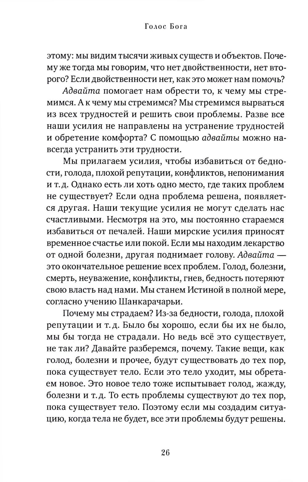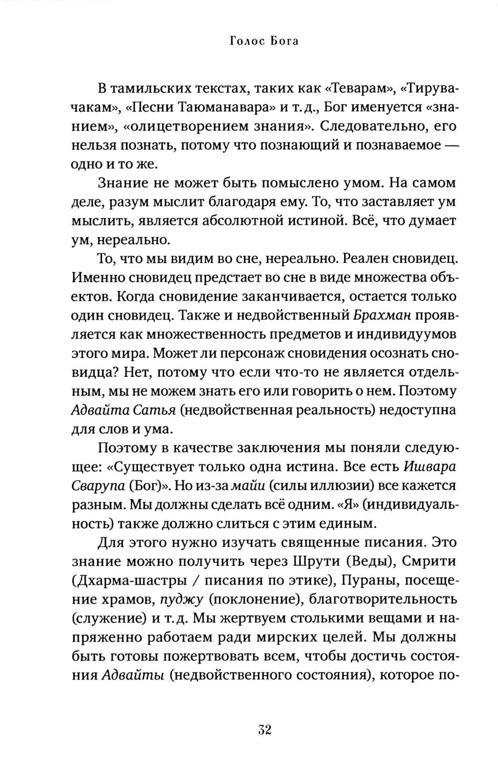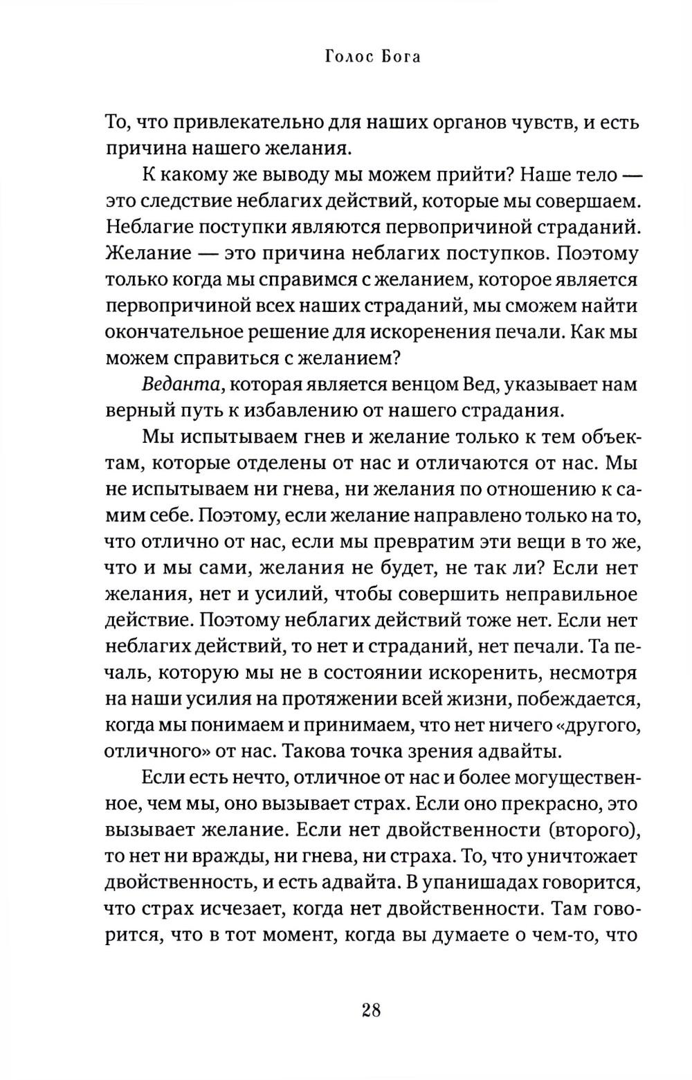 Данная книга - выдержки из бесед, цитаты и комментарии 68-го настоятеля Шри Канчи Матха (индуистского монашеского духовного ордена, основанного самим Ади Шанкарой) досточтимого Махаперьявы (Джагадгуру Шри Чандрашекхарендры Сарасвати Шанкарачарьи Махасвамигала), собранных в монументальном труде его учеником Шри Ра Ганапати и выпущенных на тамильском языке в семи томах под названием «Деи-ватин Курал» («Голос Бога»). Махаперьяву почитали как реализовавшего Истинное Я святого многие великие учителя, включая Шри Раману Махарши. Став настоятелем Канчи Матха в тринадцать лет, он всю свою жизнь (до ста лет) посвятил следованию адвайта-веданте, учению Шри Ади Шанкары, и ее распространению. Его глубокое знание священных индийских писаний, неустанное исследование учения Шри Шанкары и безупречное следование дхарме вылились в глубочайшую мудрость, которую он излагал своим ученикам просто и понятно. Книга для тех, кто хочет ознакомиться с традиционными воззрениями адвайта-веданты, которая во многом далека от новомодных западных ее версий.| Издательство | Изд. Ганга |