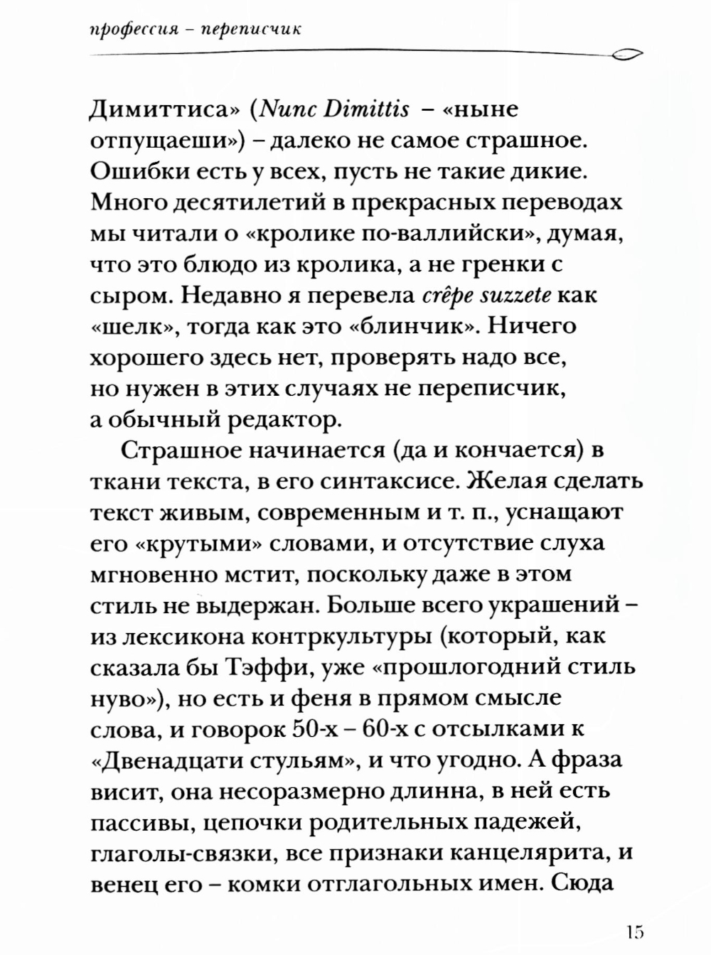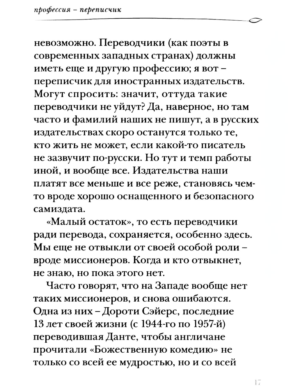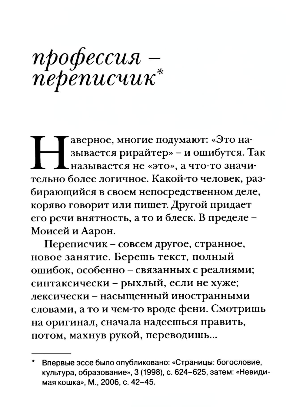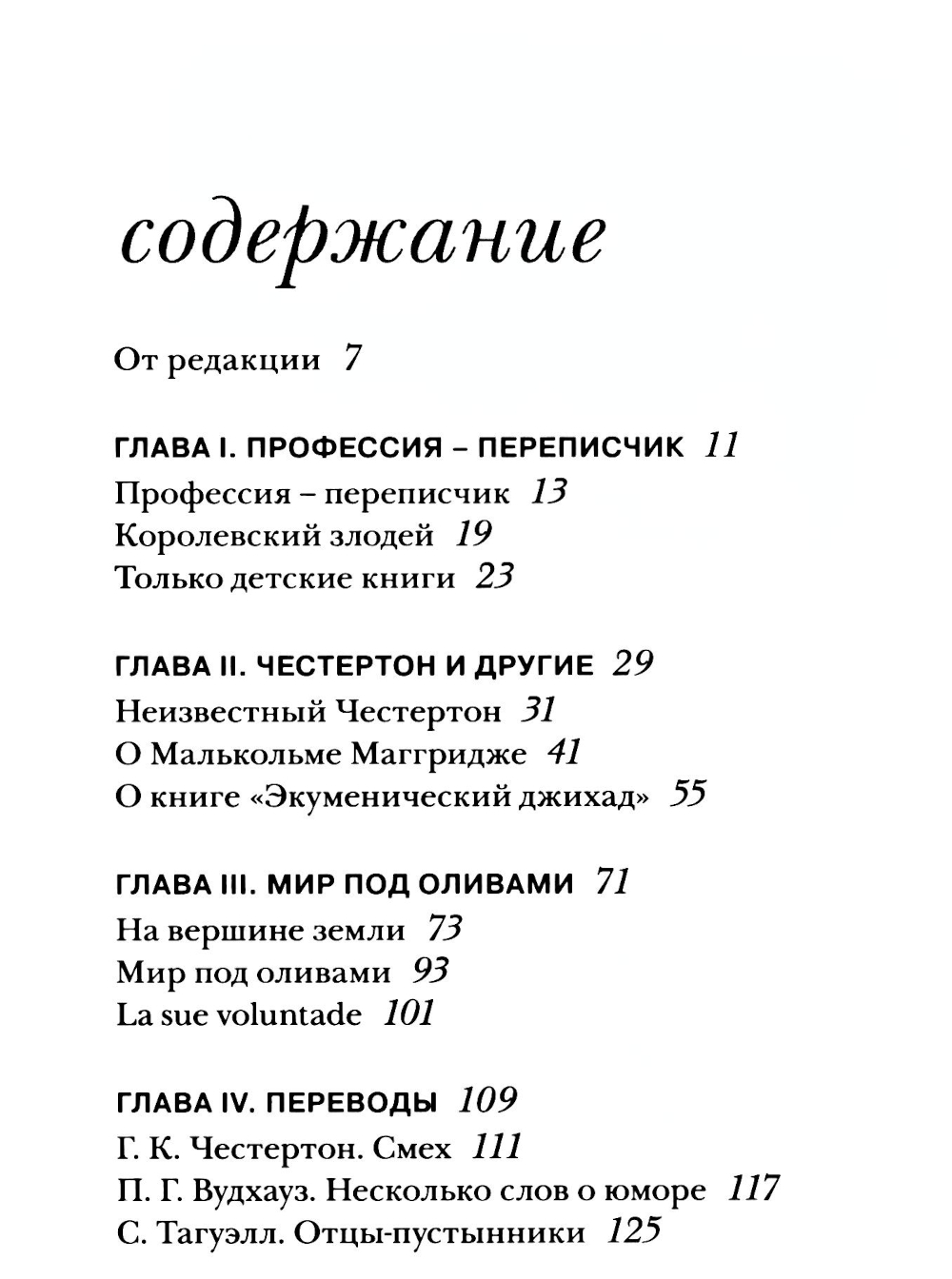 В сборник вошли статьи, эссе и переводы, сделанные Н.Л. Трауберг специально для журнала «Страницы: богословие, культура, образование», издаваемого Библейско-богословским институтом св. апостола Андрея. Наталья Леонидовна стояла у истоков этого журнала и у основания института, читала в нем лекции, работала над изданием книг. Всю свою жизнь она отдала переводу, хотя называла свою профессию «переписчик», потому что считала, что переводить книги нужно с учетом российской ментальности и особенностей русского языка, при этом она умела сохранить и красоту оригинала. В искусстве перевода ей не было равных. Но и ее оригинальные произведения не менее интересны, чем переводы. Они небольшие, но емкие, метафоричные, иногда парадоксальные, заставляющие читателя по-новому взглянуть на привычные вещи и узреть подлинный смысл явлений. Некоторые из вошедших в сборник произведений нигде кроме «Страниц» не публиковались.| Издательство | Изд. ББИ |