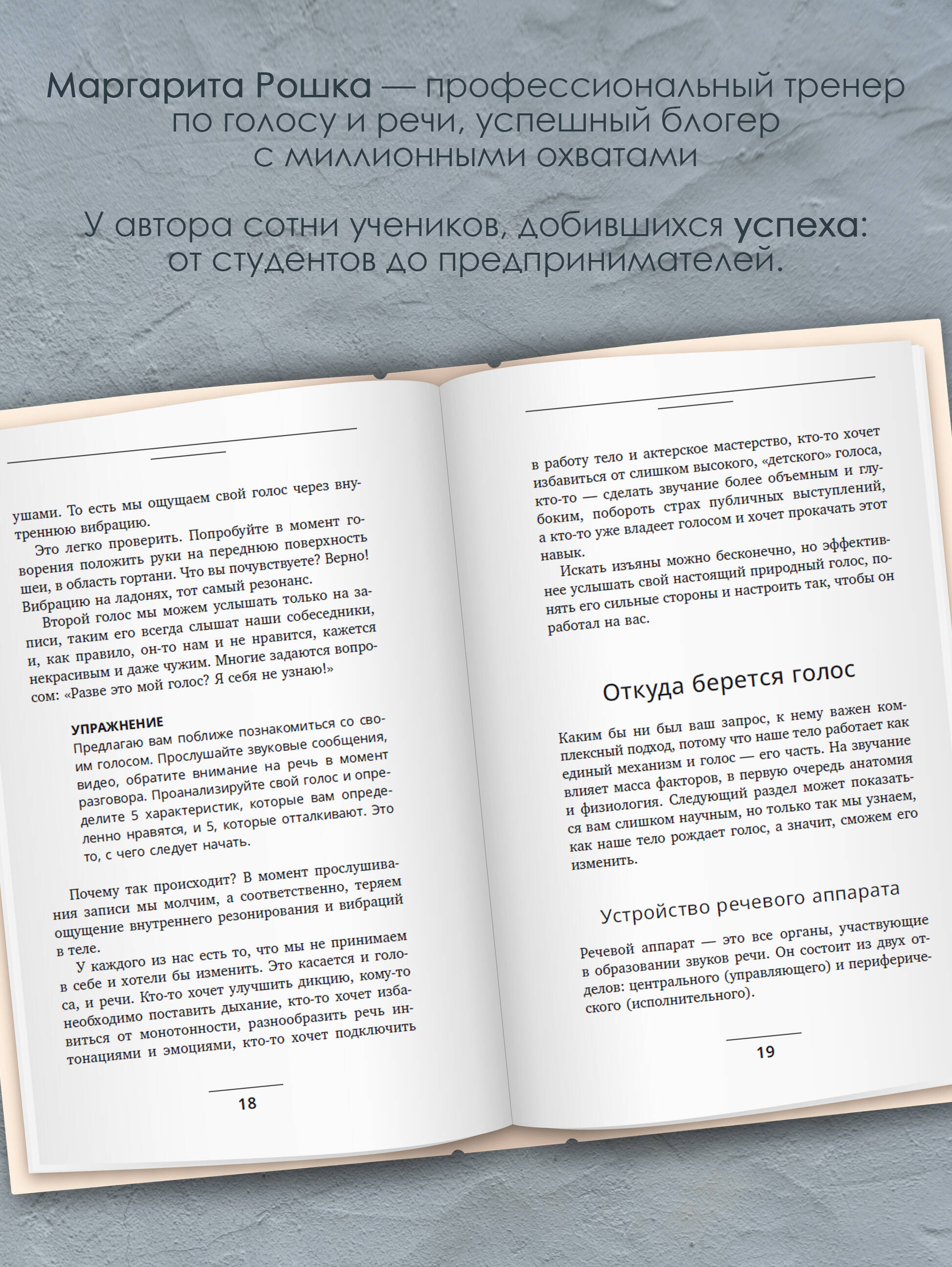 Маргарита Рошка - профессиональный тренер по голосу и речи, диктор с опытом озвучки более 1000 роликов, поэтесса, чтец, автор сборника стихов и успешный блогер с миллионными охватами. Ваш голос - это скрытый суперскилл. Он работает, даже когда мы этого не замечаем, - создает репутацию, формирует впечатление, влияет на отношение окружающих. Перед вами практическое руководство по развитию голоса и речи, которое поможет осознанно управлять голосом - он станет незаменимым инструментом влияния в любых ситуациях. Вы научитесь успокаивать и активизировать людей с помощью разных "настроек" голоса (тембр, ритм, тональность), сможете менять интонации и передавать настроение собеседнику, чтобы успешно провести любые переговоры или заручиться поддержкой. Эффективные упражнения и техники для улучшения дыхания, дикции и снятия зажимов научат преодолевать страх публичных выступлений, разовьют выразительность и уверенность в общении. Вы познакомитесь с дыхательными практиками, артикуляционной гимнастикой, научитесь работать с резонаторами и узнаете психологические приемы для раскрепощения. Практические советы и пошаговые упражнения помогут достичь заметных результатов уже через несколько недель регулярных занятий.| Издательство | Издательство "АСТ" |