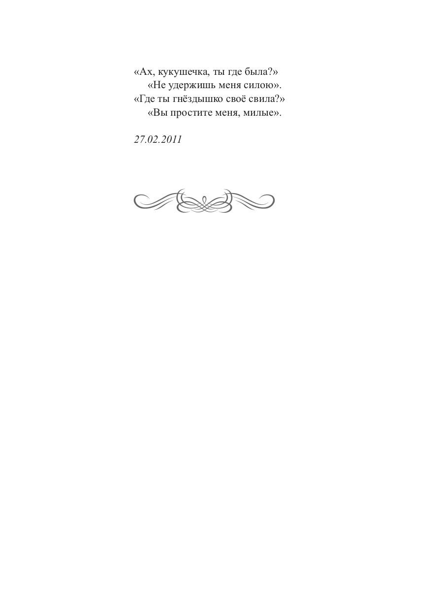 Собрать слова в красочный поэтический текст дано не каждому, а оживить их и наполнить музыкой - тем более. Так, у автора уникального сборника «Голос с неба» появился интерес к рифме и окрылению слова, то есть написанию песен, ещё в 12 лет. С той поры каждая яркая эмоция отзывалась душевным переживанием... Вы попадёте в мир фантазий, грёз, раздумий девочки, девушки, женщины. Это прикосновение к истокам и безграничная любовь к родным сибирским местам. Это бережное отношение к семейным традициям и низкий поклон героям ВОВ. Это детская игривость и эксцентричный кураж. И, конечно же, бесконечная лирика. И всё это написано с огромной любовью!| Издательство | Т8 RUGRAM |