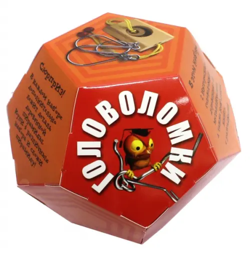 В наборе: книга-инструкция (16 страниц с цветными иллюстрациями), 1 металлическая и 1 деревянная головоломки + деталь от пирамиды.