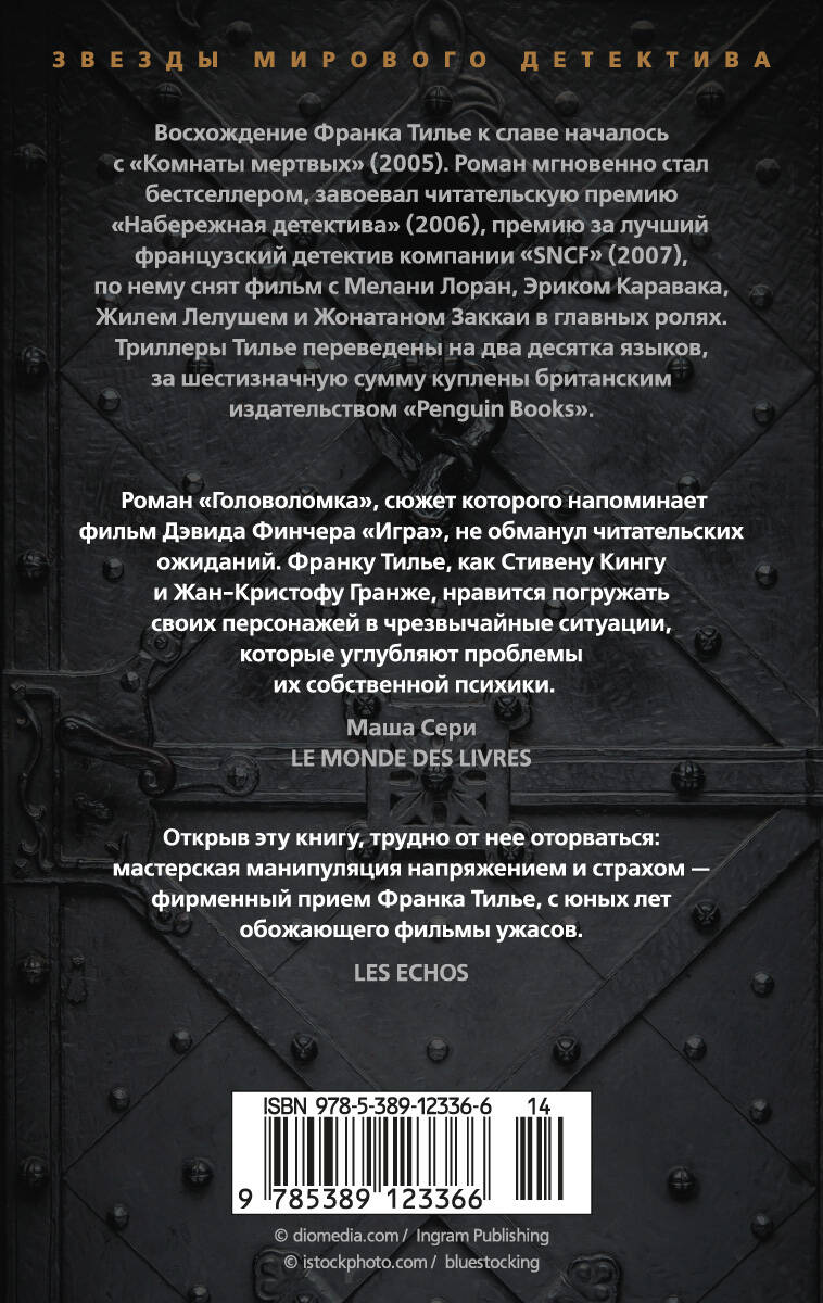 В триллере Франка Тилье "Головоломка" герои Илан и Зоэ, профессиональные охотники за сокровищами, внедряются в таинственную игру, где главный приз составляет триста тысяч евро, а цена ее - человеческая жизнь. Правила игры им неизвестны, они знают лишь ее название: "Паранойя". В горах на территории заброшенной психиатрической лечебницы восемь участников должны бросить вызов своим самым потаенным страхам. Чтобы обрести ключ от заветного сейфа с деньгами, нужно собрать десять черных хрустальных лебедей. Но осторожно: цена такой находки - жизнь. Ваша жизнь.| Издательство | Азбука-Аттикус Издат.группа ООО |