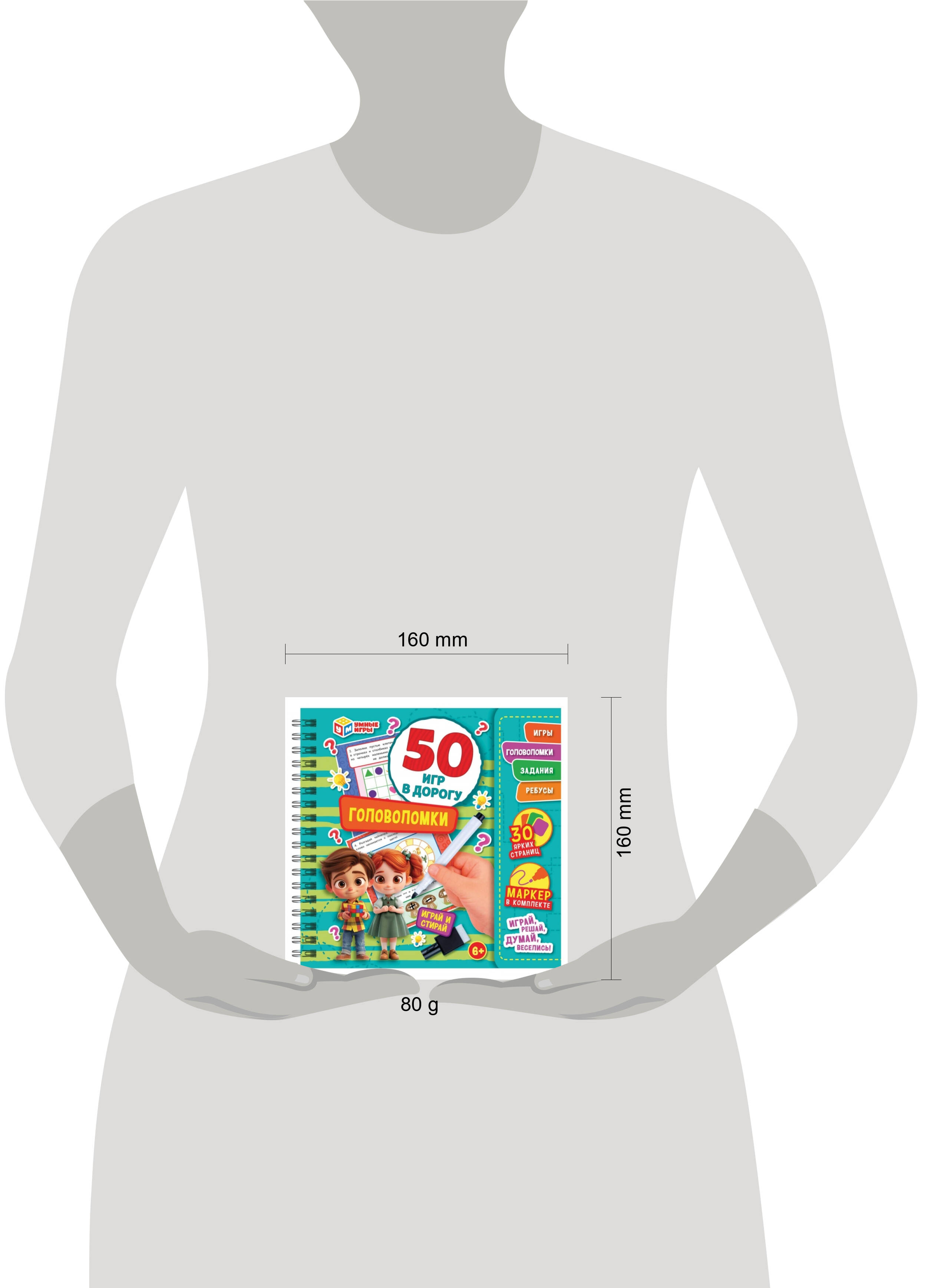 Аннотация: Головоломки. 50 игр в дорогу. 160х160х20 мм. Блокнот на пружине с маркером. Умные игры в кор.50шт