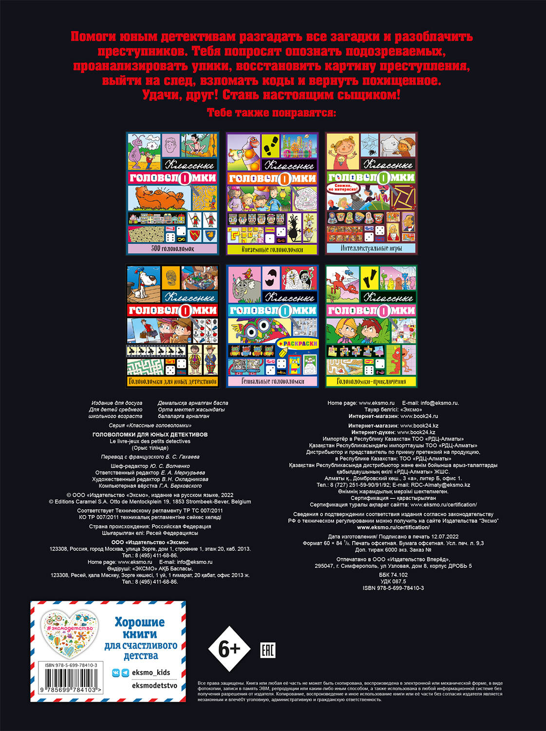 Хотите побывать в затерянном городе, отправиться на неизведанную планету, побродить по стране эрудированных монстриков и поучаствовать в настоящих детективных расследованиях? Тогда скорее открывайте эту увлекательную книгу! Вас ждут захватывающие головоломки, задания на смекалку, наблюдательность и логику - по 100 в каждой книге!| Издательство | ООО "Издательство "Эксмо" |