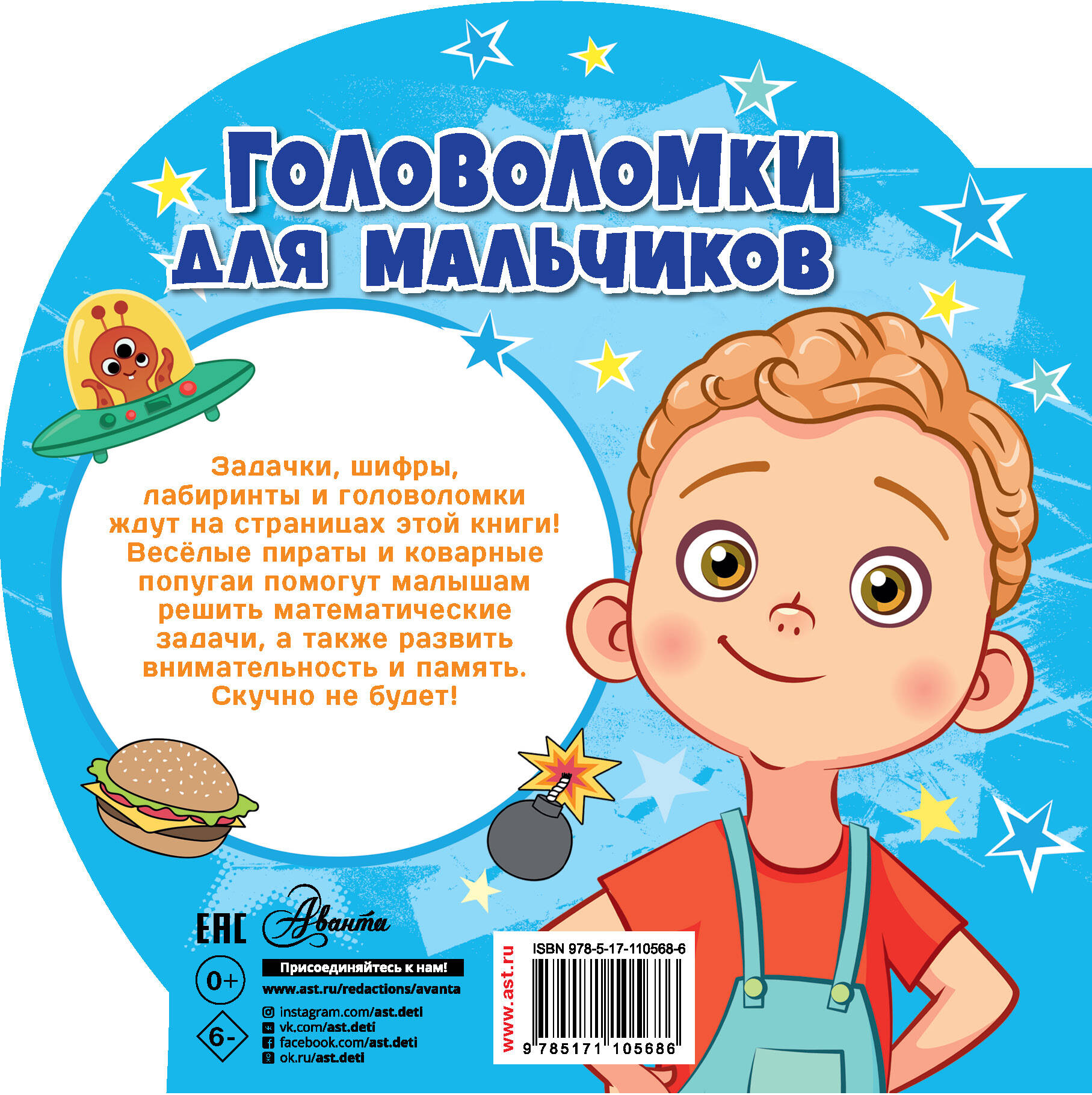 Задачки, шифры, головоломки и лабиринты ждут на страницах книги "Головоломки для мальчиков". Весёлые пираты и коварные попугаи помогут малышам решить математические задачи, а также развить внимательность и память. Читателям придётся находить отличия, соединять слова, расшифровывать послания, рисовать и раскрашивать… Скучно не будет! Для младшего школьного возраста.| Издательство | ИЗДАТЕЛЬСТВО "АСТ" |