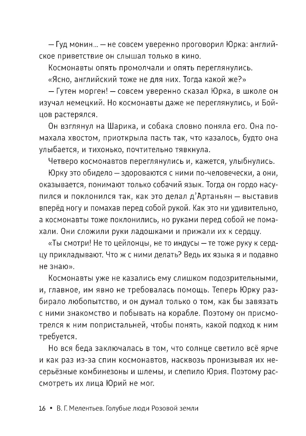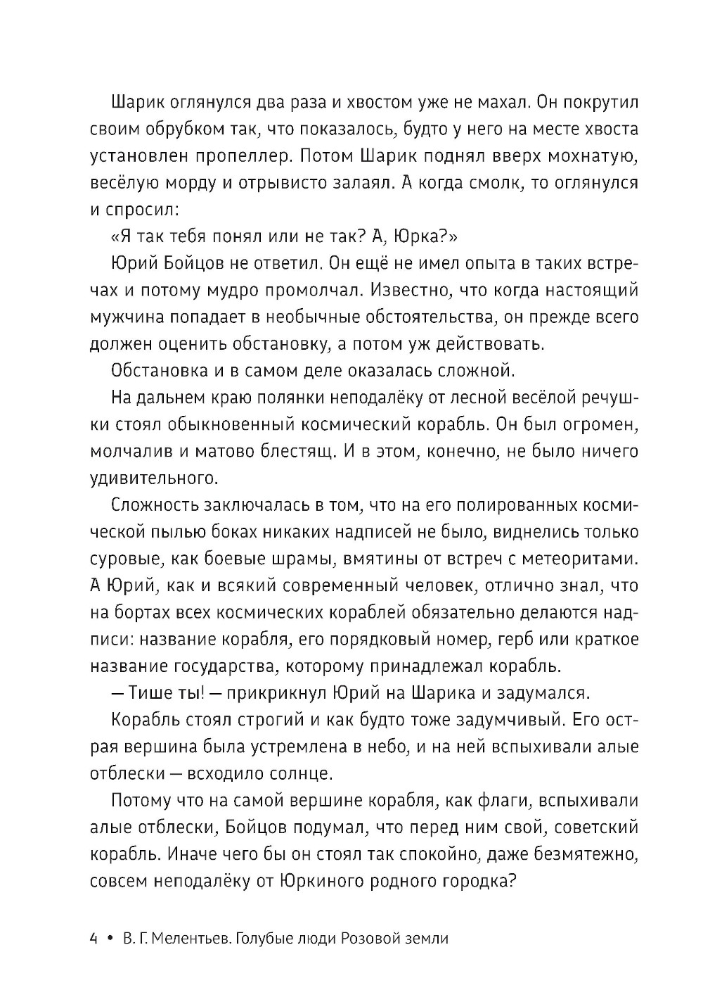 Кто из ребят не мечтал познакомиться с обитателями других планет? А вот шестикласснику Юрке Бойцову вместе с верным псом Шариком это удалось. Однажды на знакомой земляничной поляне он не просто встретил настоящий космический корабль, но и обрёл новых друзей. И пусть четыре пришельца с Розовой земли внешне совсем не похожи на обычных мальчиков и девочек, они находят с Юркой общий язык и даже совершают совместное путешествие к другим планетам, где их ждёт множество опасных приключений. Эта детская фантастическая повесть 1960-х годов стала любимой для многих поколений школьников СССР, мечтающих о покорении космоса и знакомстве с другими цивилизациями. Эта книга научит ребёнка быть ответственным и дисциплинированным, ценить и уважать мнение старших, не лениться и стремиться к новым знаниям и открытиям, вырабатывать характер и уметь отстаивать своё мнение. В 13 лет важно иметь правильные жизненные ориентиры, поэтому автор предлагает взглянуть на типичные подростковые проблемы не просто со стороны, а с другой планеты.| Издательство | Доброе детство |