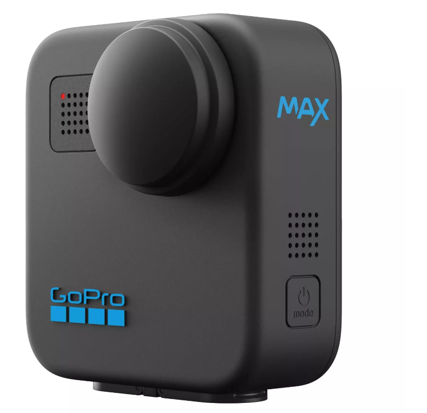 GoPro Max универсальная экшн‑камера с возможностью съёмки в формате 360° и традиционном режиме HERO. Камера поддерживает съёмку сферического видео в разрешении 5.6 K, обладает передовой стабилизацией изображения Max HyperSmooth и функцией автоматического выравнивания горизонта Horizon Lock. Устройство оснащено 6‑микрофонной системой для записи пространственного звука и сенсорным дисплеем. Камера водонепроницаема до 5 метров, устойчива к ударам и поддерживает голосовое управление, Wi‑Fi, Bluetooth и GPS.
