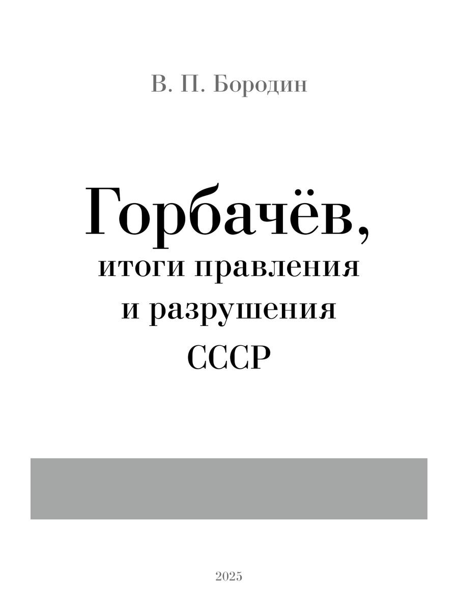 В работе показан итог деятельности М. С. Горбачева на посту Генерального секретаря ЦК КПСС, итоги правления и разрушения СССР.| Издательство | Рипол Классик |