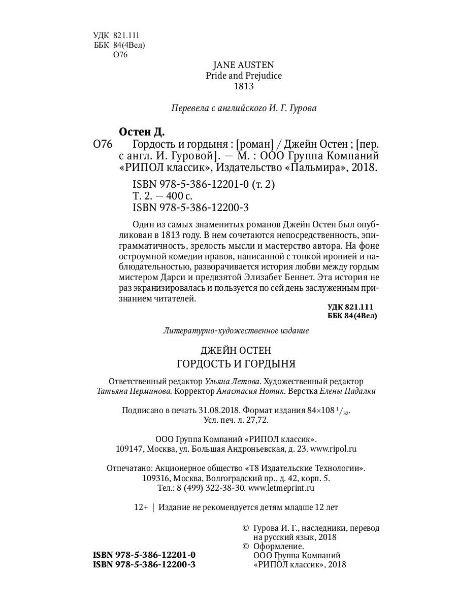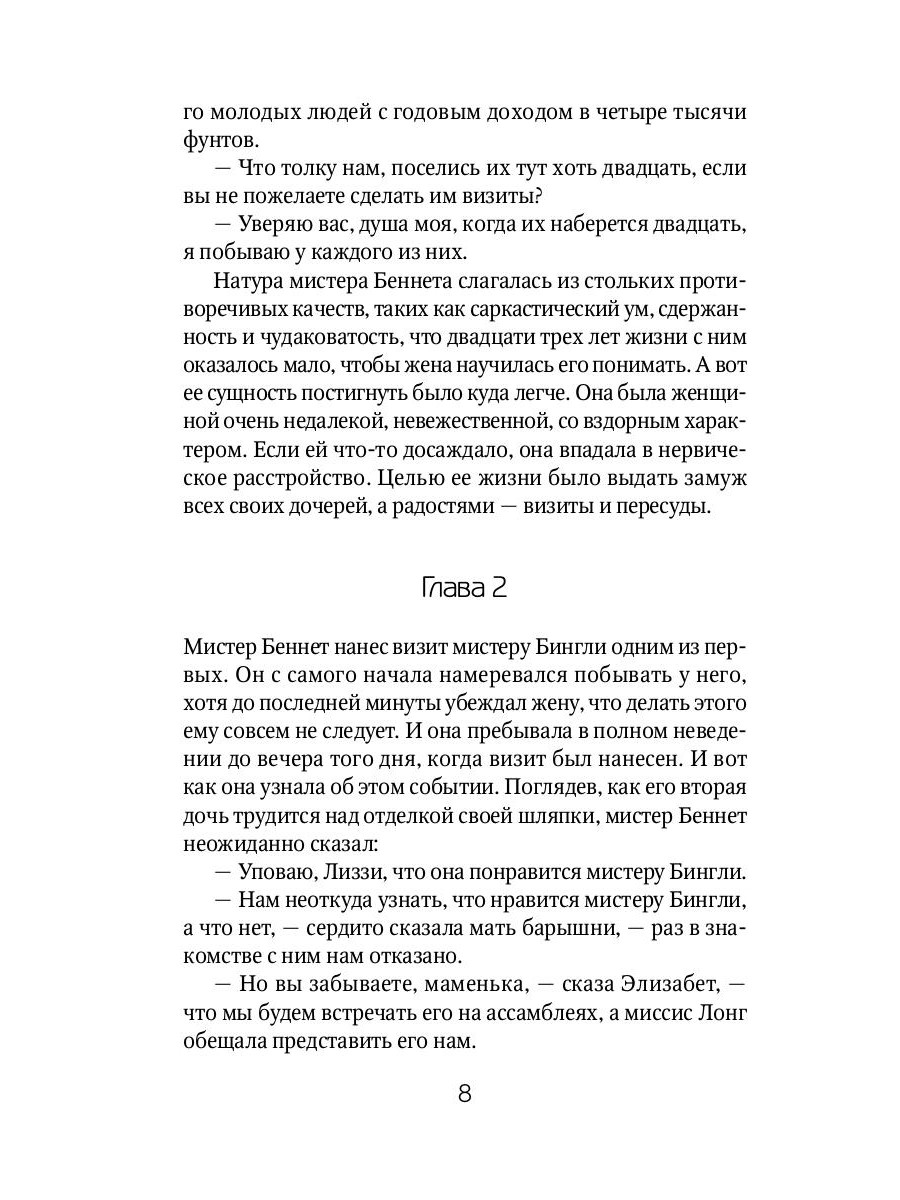 Один из самых знаменитых романов Джейн Остен был опубликован в 1813 году. В нем сочетаются непосредственность, эпиграмматичность, зрелость мысли и мастерство автора. На фоне остроумной комедии нравов, написанной с тонкой иронией и наблюдательностью, разворачивается история любви между гордым мистером Дарси и предвзятой Элизабет Беннет. Эта история не раз экранизировалась и пользуется по сей день заслуженным признанием читателей.| Издательство | Рипол Классик |