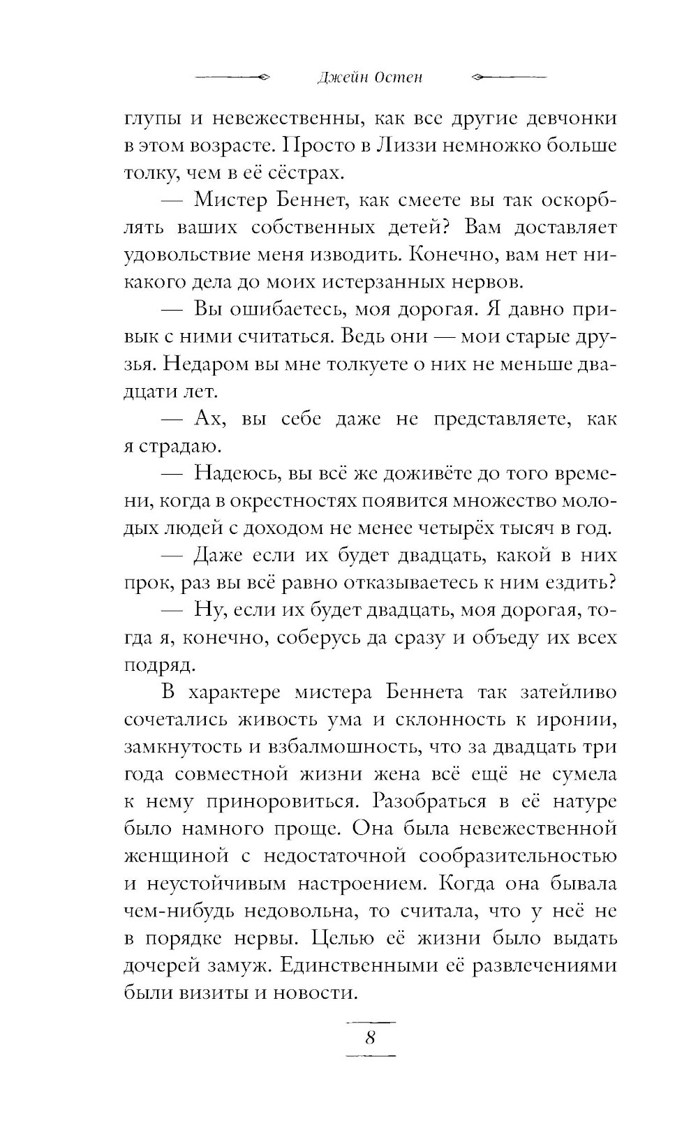 «Гордость и предубеждение» - самый известный из шести романов английской писательницы Джейн Остен. В неторопливом повествовании о жизни небогатого провинциального семейства читатели находят то, что им по душе: романтические истории и светские интриги, философские размышления и противостояние сильных характеров - и, конечно, непревзойдённый английский юмор. Не случайно роман был экранизирован 8 раз, не считая кинофильмов, созданных по мотивам произведения. Но кто из героев обретает в конце концов истинное счастье, каждый из нас до сих пор решает по-своему.| Издательство | Эксмо |