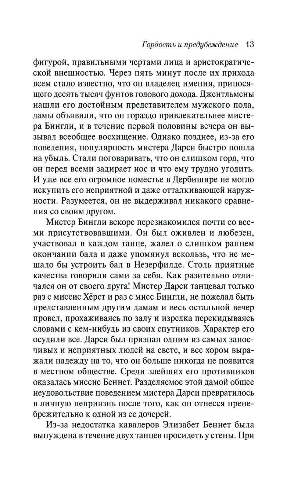 Шедевр английской литературы «Гордость и предубеждение» был впервые опубликован в 1813 году и до сих пор не теряет своего обаяния, оставаясь одним из самых популярных романов всех времен. Остроумная комедия нравов, вышедшая из-под пера Джейн Остен, получила значительное внимание со стороны критиков и проложила путь к тем прообразам, которые можно найти и в современной литературе. На фоне быта английского провинциального общества, нравы которого автор описывает с тонкой иронией и удивительной наблюдательностью, разворачивается великолепный спор между гордым мистером Дарси и предвзятой Элизабет Беннет. Благодаря изящному слогу писательницы страница за страницей в главной героине романа расцветает чувственная и невинная любовь, не знающая никаких преград. Издание романа выходит в великолепном классическом переводе Иммануэля Самойловича Маршака, который считается каноническим.| Издательство | Эксмо |