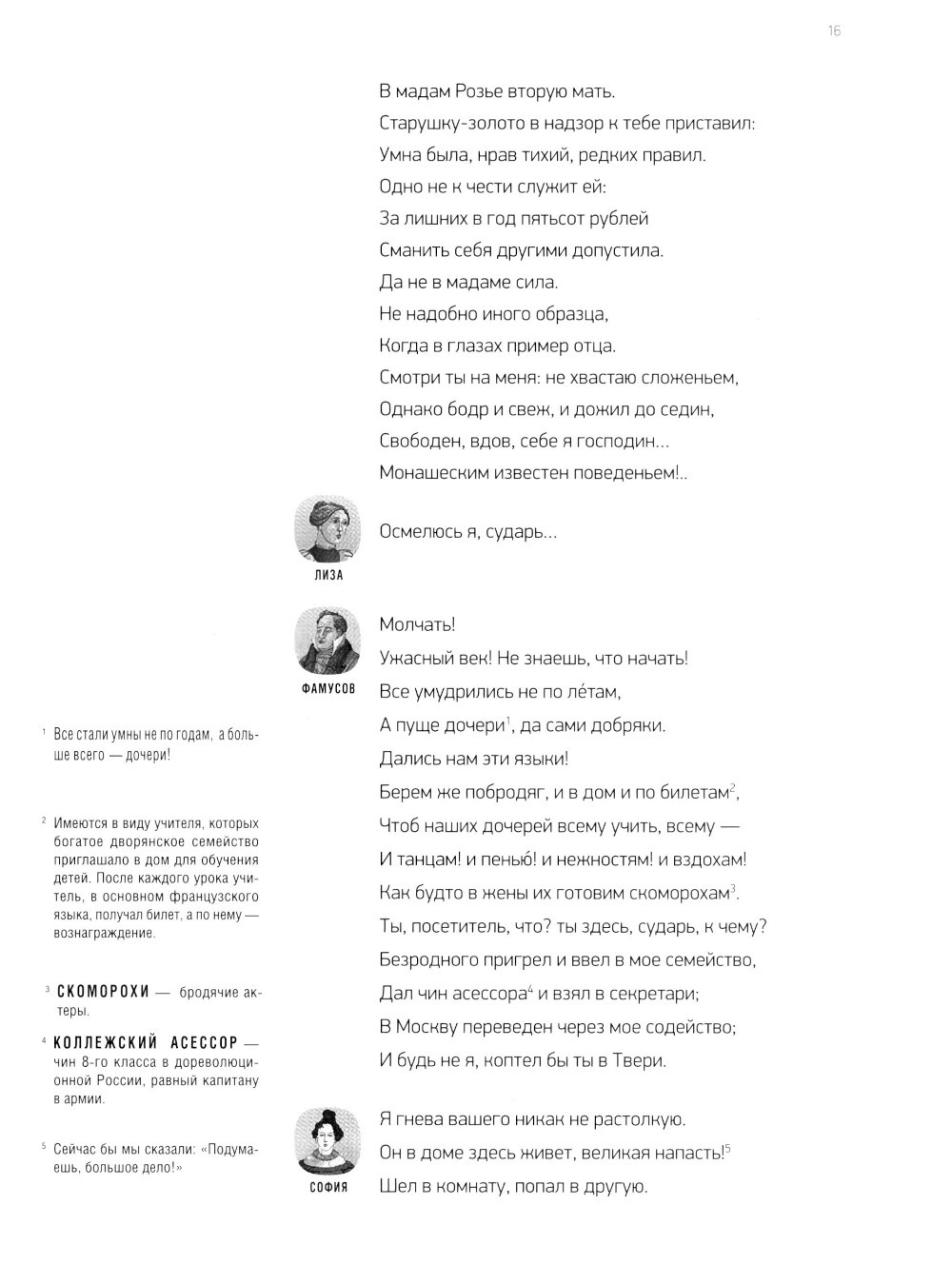 В издании приводится текст бессмертной комедии А. С. Грибоедова «Горе от ума» с постраничными комментариями и замечательными иллюстрациями Валерии Сен. Книга подготовлена с использованием современных издательских технологий, позволяющих читать пьесу «в лицах» и получать справочную информацию, не отвлекаясь от содержания великого произведения. Для читателей всех возрастов и политических убеждений.| Издательство | Проспект |