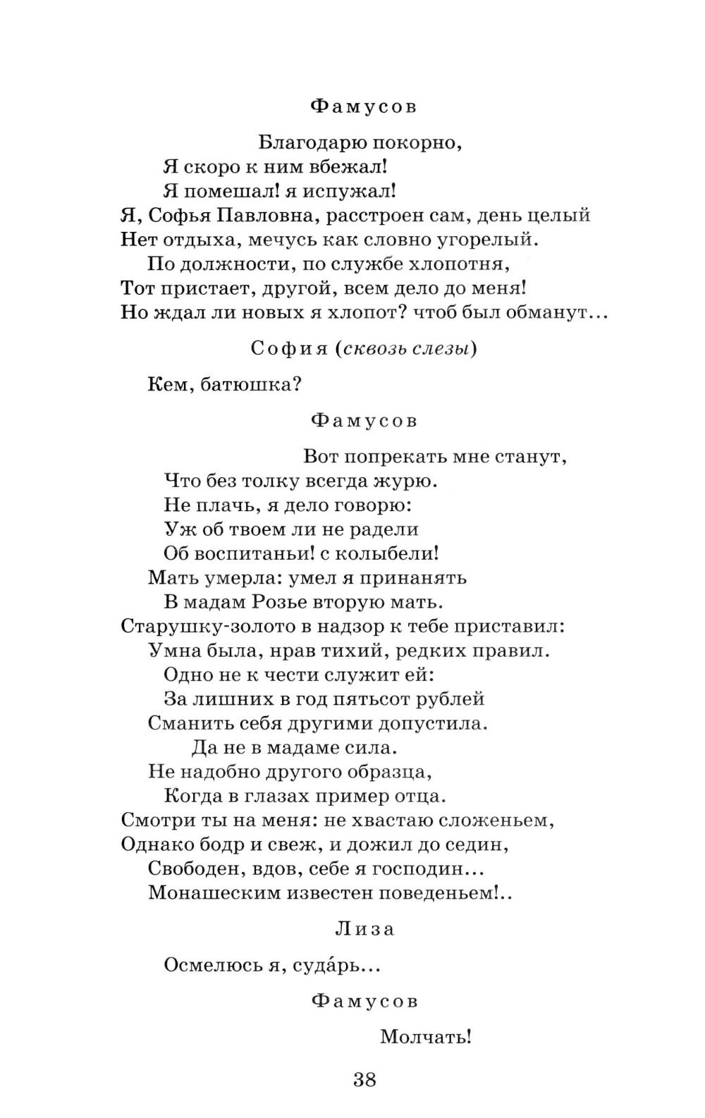 Бессмертная комедия А.С. Грибоедова представляет собой гениальное произведение русской литературы, не сходящее с театральных подмостков более полутора веков. В центре сюжета - конфликт прогрессивного Чацкого с закостенелым обществом Фамусова. На фоне острого социального противостояния разворачивается любовная история: Софья, дочь Фамусова, разрывается между чувствами к Чацкому и секретарю Молчалину. Издание дополнено статьёй И.А. Гончарова «Мильон терзаний», помогающей глубже понять суть произведения. Текст представлен без сокращений, сопровождается комментариями и чёрно-белыми иллюстрациями. Книга станет незаменимым помощником для школьников при изучении произведения, подготовке к экзаменам и написанию сочинений. Издание соответствует всем требованиям школьной программы и стандартам безопасности для учащихся.| Издательство | Детская литература |
