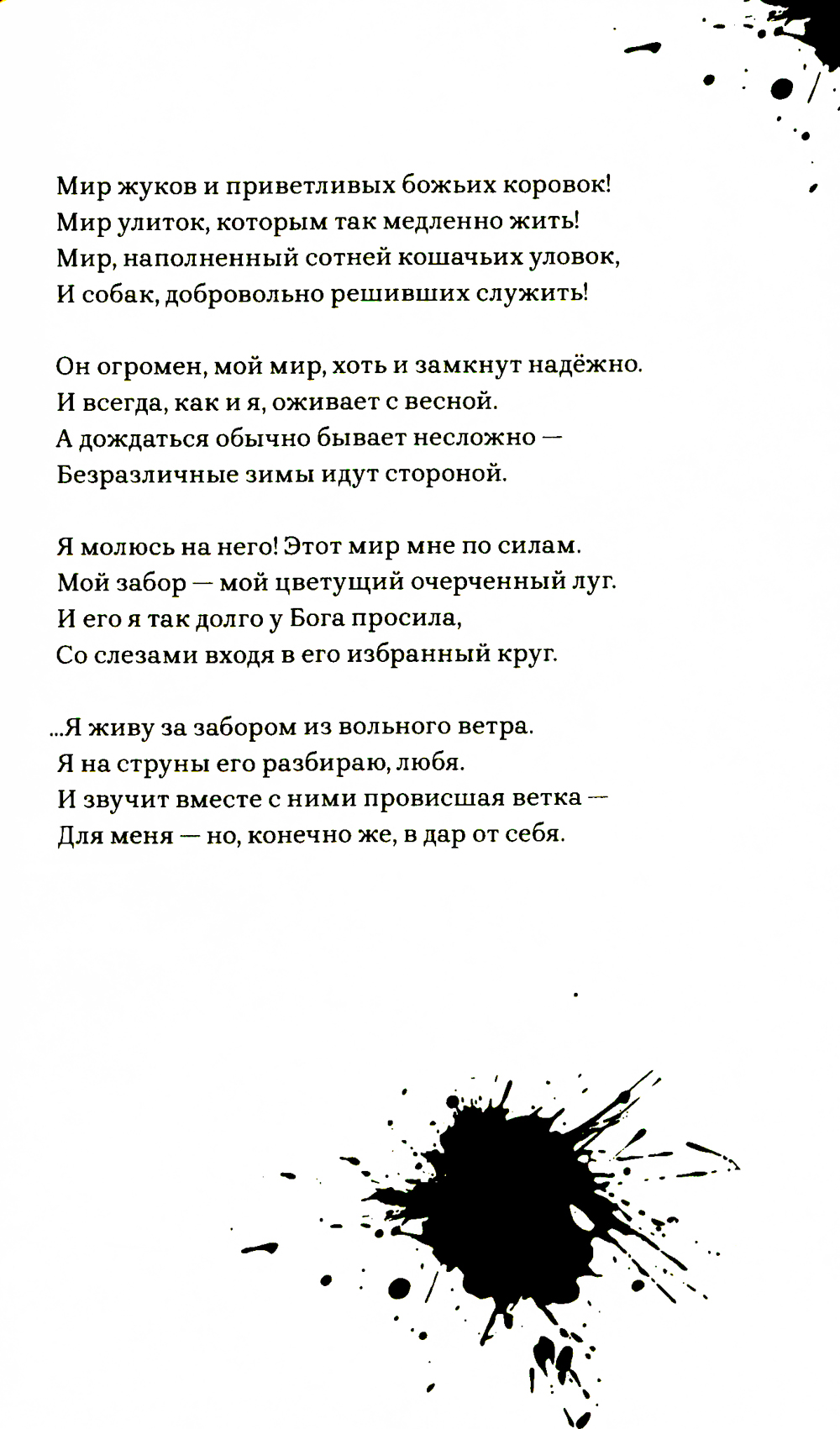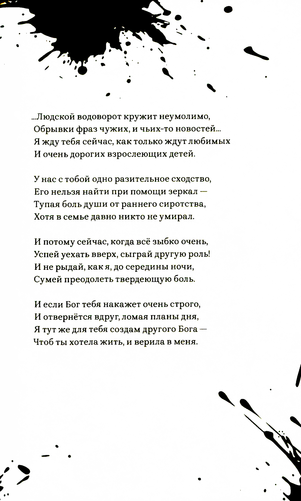 Известная мудрость гласит: «Горькое лечит, а сладкое - калечит». В моих стихах много горечи. Возможно, она не всем по вкусу. Хочется, чтобы книга попала в руки тех, кто сам множество раз переживал горькие чувства. А далее делал выбор: благодарить судьбу за горький опыт - или же нет... Думаю, людей замкнутых, с серьёзными внутренними переживаниями гораздо больше, чем принято считать. Они изо всех сил стараются выглядеть, «как все», хотя даётся это с трудом. И ещё: примерные дети и примерные родители вряд ли поймут, о чём я пишу. Сейчас о несчастливом детстве говорят чуть ли не с юмором. Мои читатели никогда не будут шутить на эту тему.| Издательство | Издание книг ком |