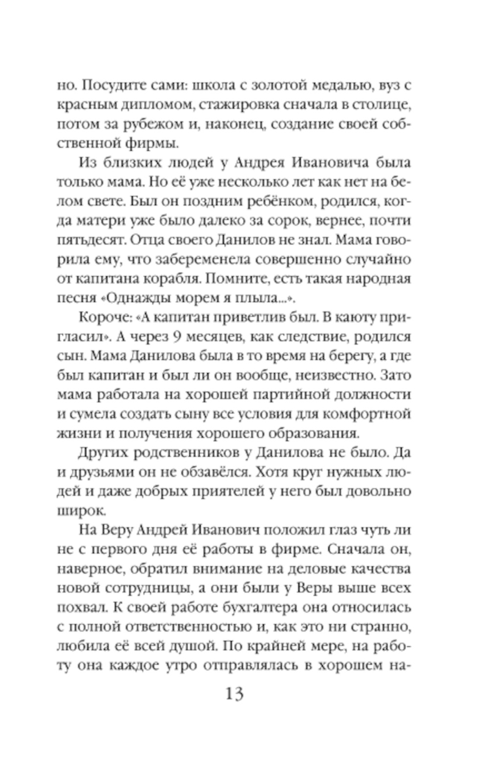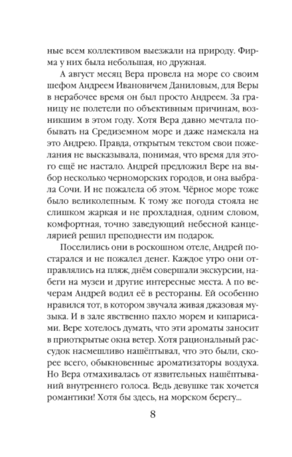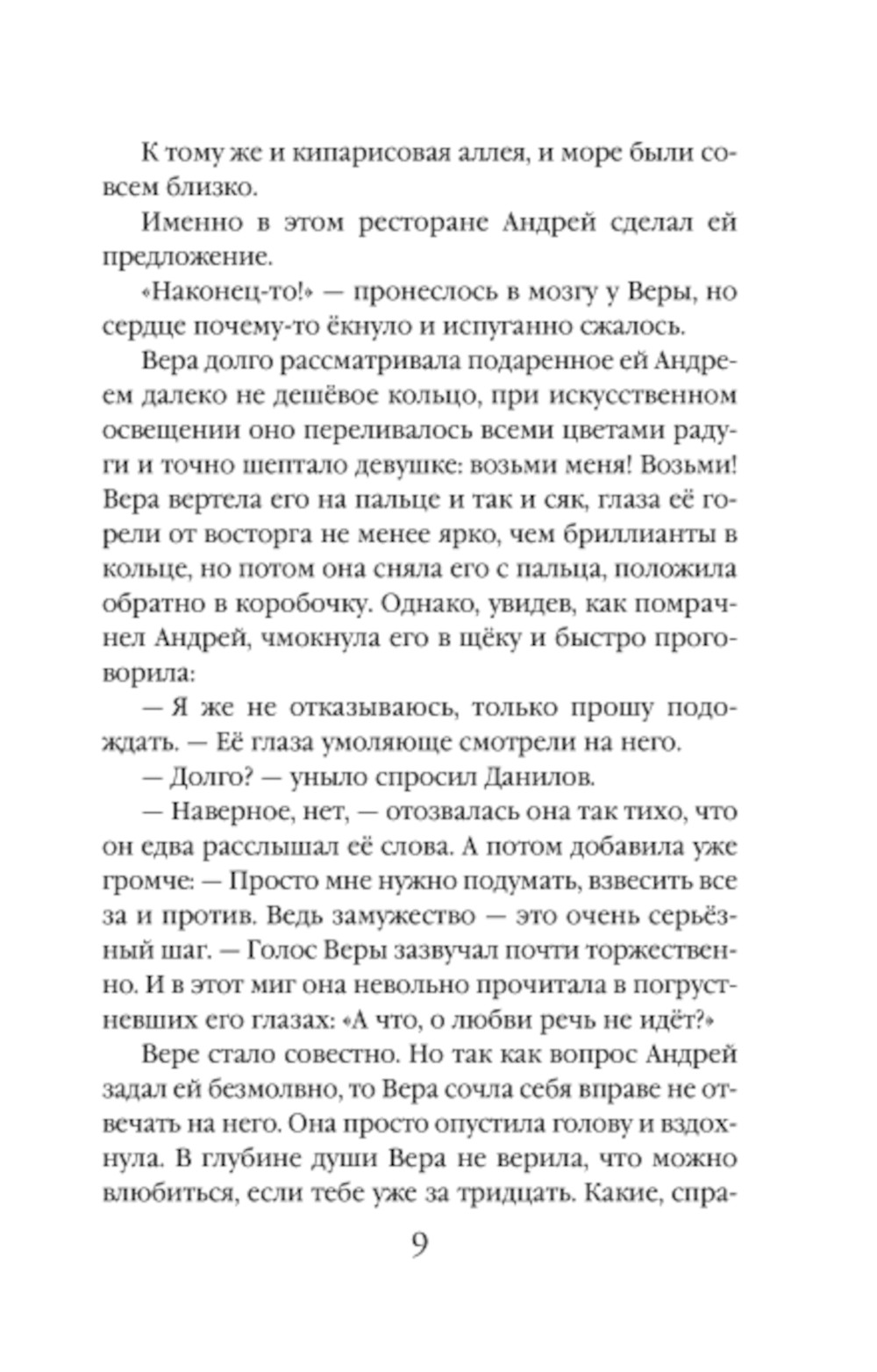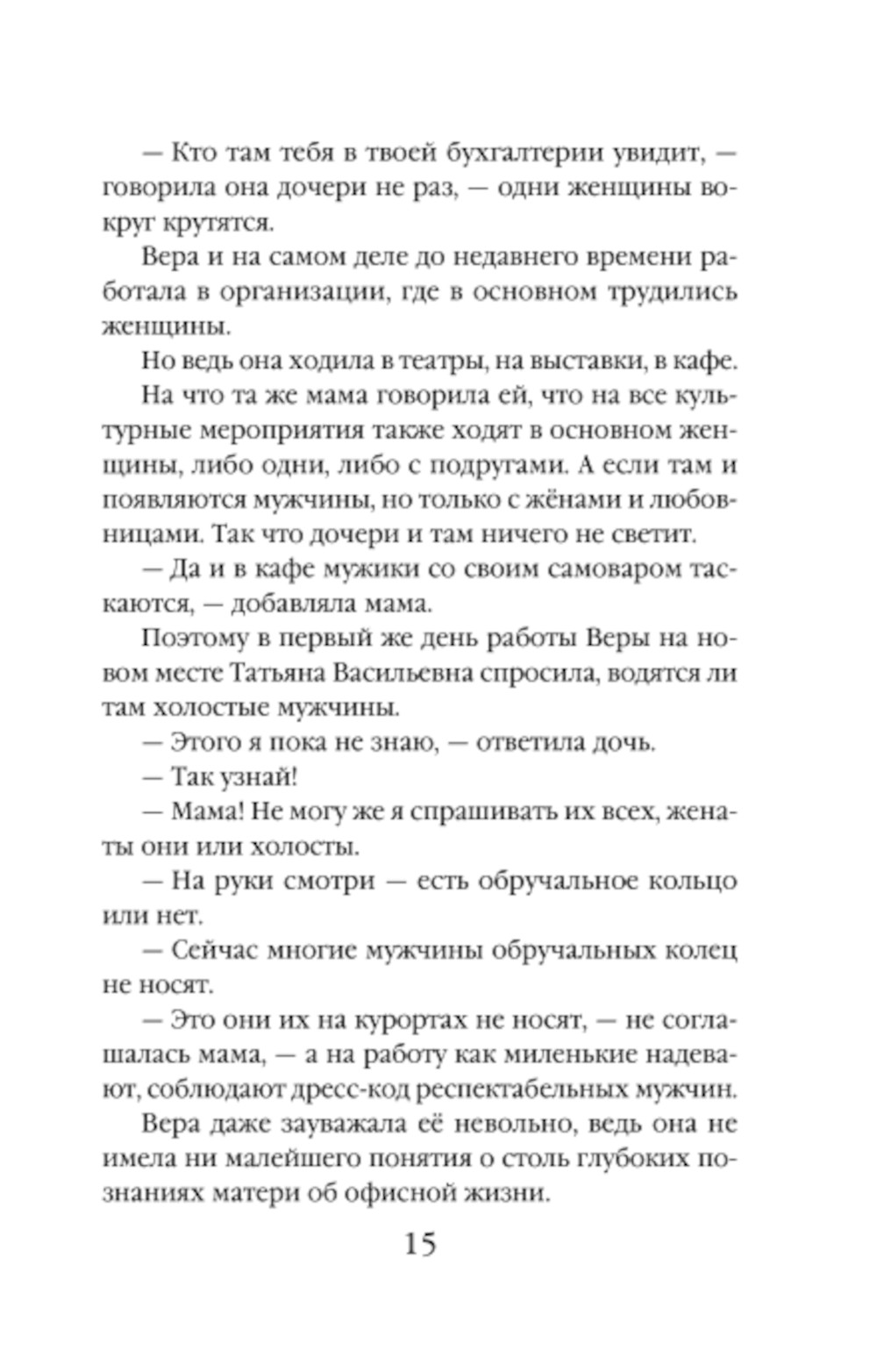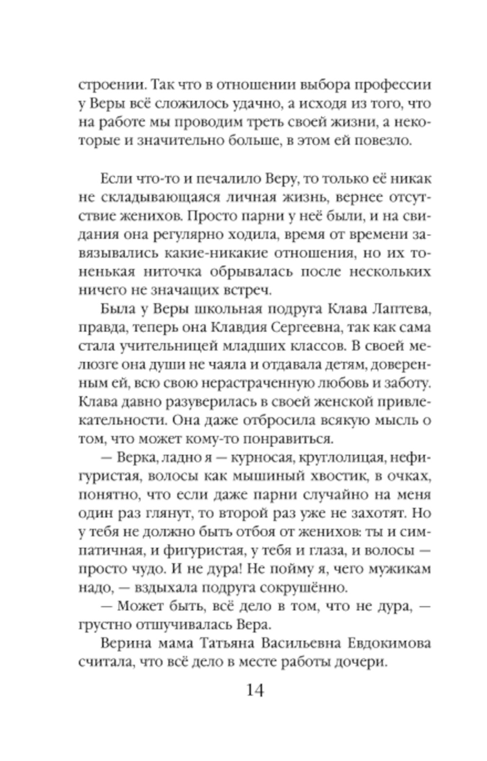 Симпатичная и умная Вера имеет заботливых родителей, верную подругу, любимую хорошо оплачиваемую работу. Но Вере тридцать лет, и пора бы замуж. Неожиданно в Веру влюбляется ее шеф и делает ей предложение! Казалось, бы, Вера должна была обрадоваться, однако Вера пребывает в растерянности, ведь в ее душе ничего не отозвалось. Зато когда Вера случайно встретила уличного художника Эдуарда, внутри вспыхнуло пламя... Мирослава Волгина, владелица детективного агентства, получает необычный заказ. К ней обращается секретарша, которую обвинили в убийстве шефа на рабочем месте. Всё против девушки: даже на орудии убийства оказались ее отпечатки. Мирослава верит в невиновность секретарши и решает ей помочь...| Издательство | Эксмо |