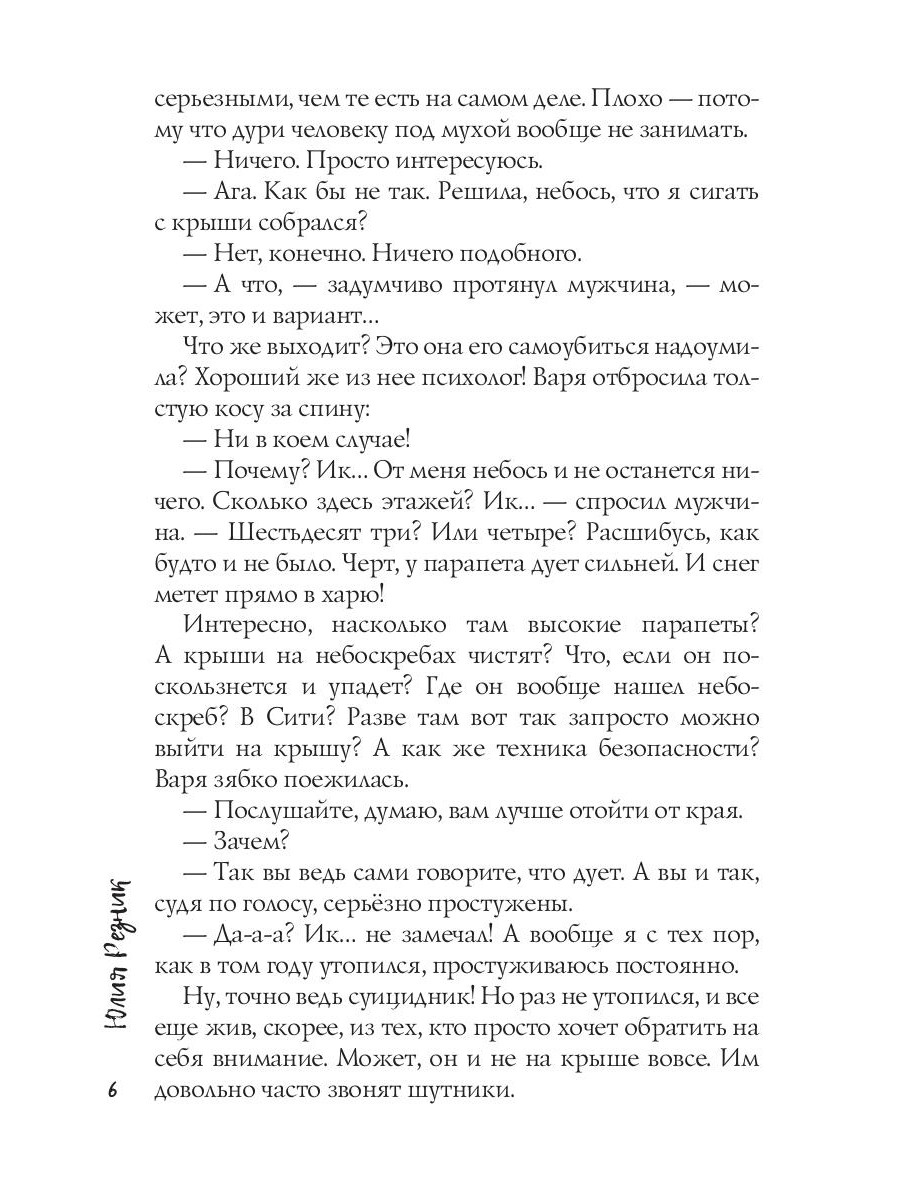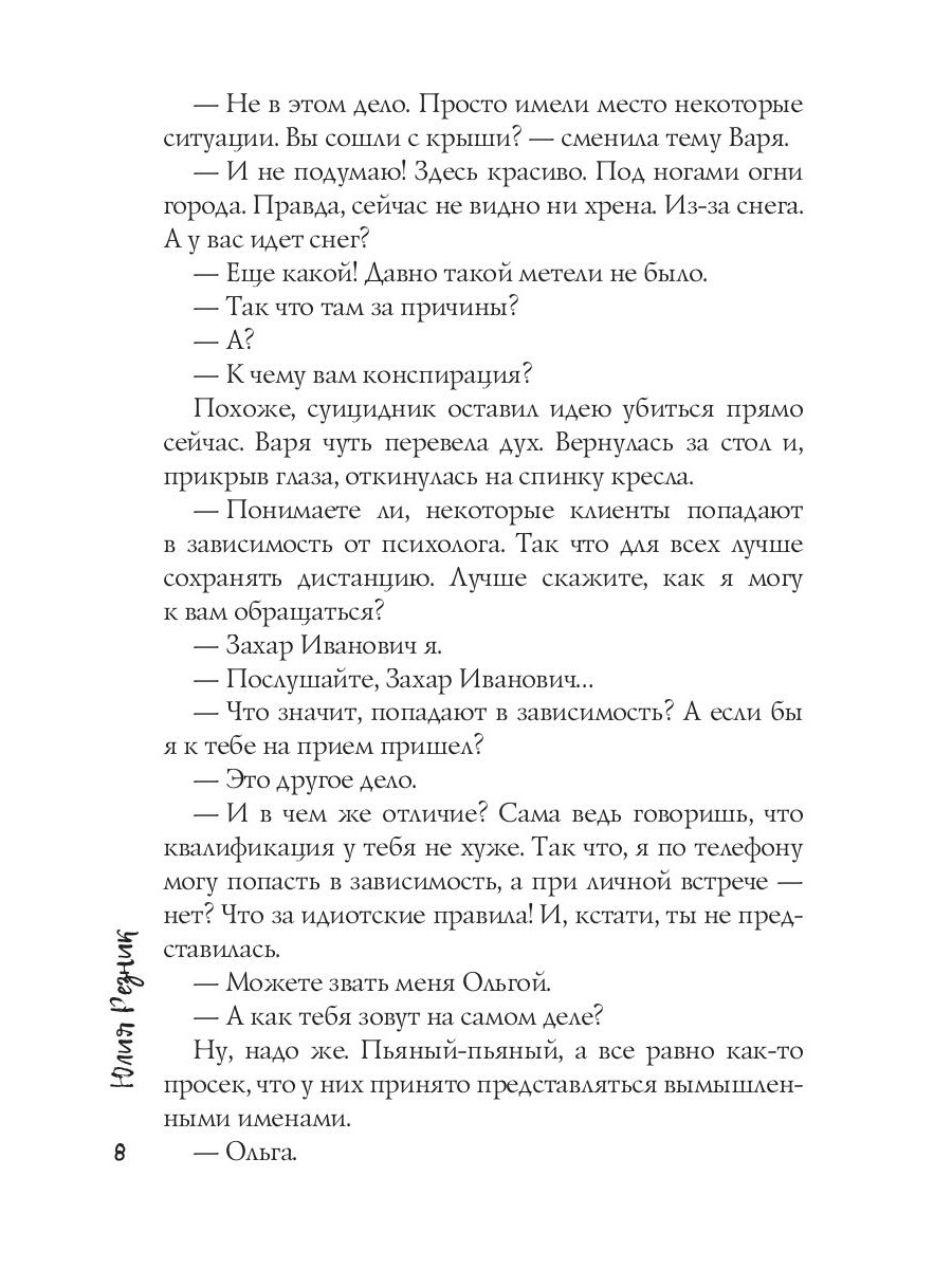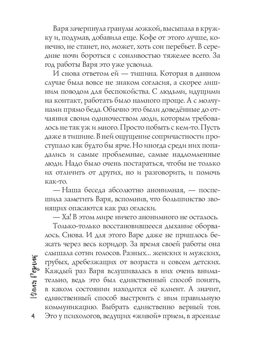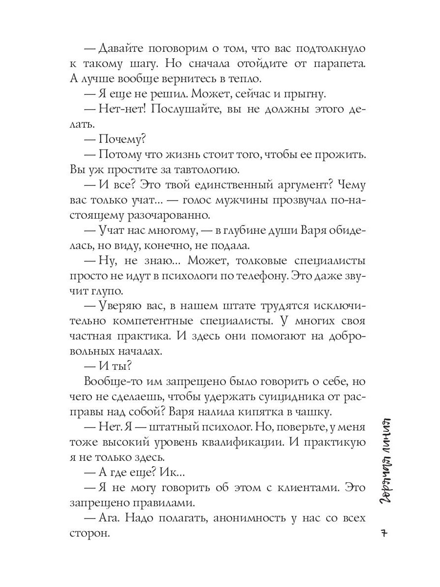 Варя - психолог на горячей линии. В ее работе не так уж много правил, но она нарушает их все, когда влюбляется в клиента. Согласившись на личную встречу, она понимает, что Захар - мужчина ее мечты. Взрослый, напористый, властный. Их роман развивается с головокружительной скоростью. Только Варе все чаще кажется, что Захар совершенно не тот, за кого себя выдаёт.