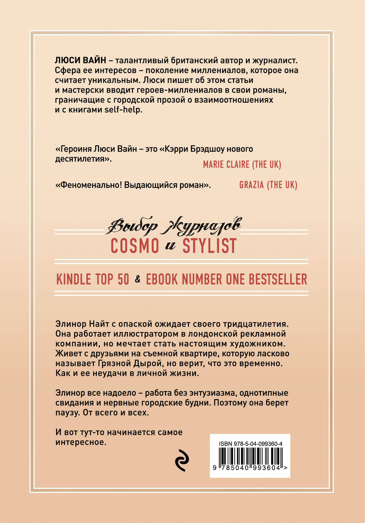 Элинор Найт с опаской ожидает своего тридцатилетия. Она работает иллюстратором в лондонской рекламной компании, а мечтает стать настоящим художником. Живет с друзьями на съемной квартире, которую ласково называет Грязной Дырой, но надеется, что это временно. Как и ее неудачи в личной жизни. Элинор все надоело - работа без энтузиазма, бесконечные однотипные свидания и нервная городская жизнь. Поэтому она берет паузу. Ото всего и всех. И вот тут-то начинается самое интересное.