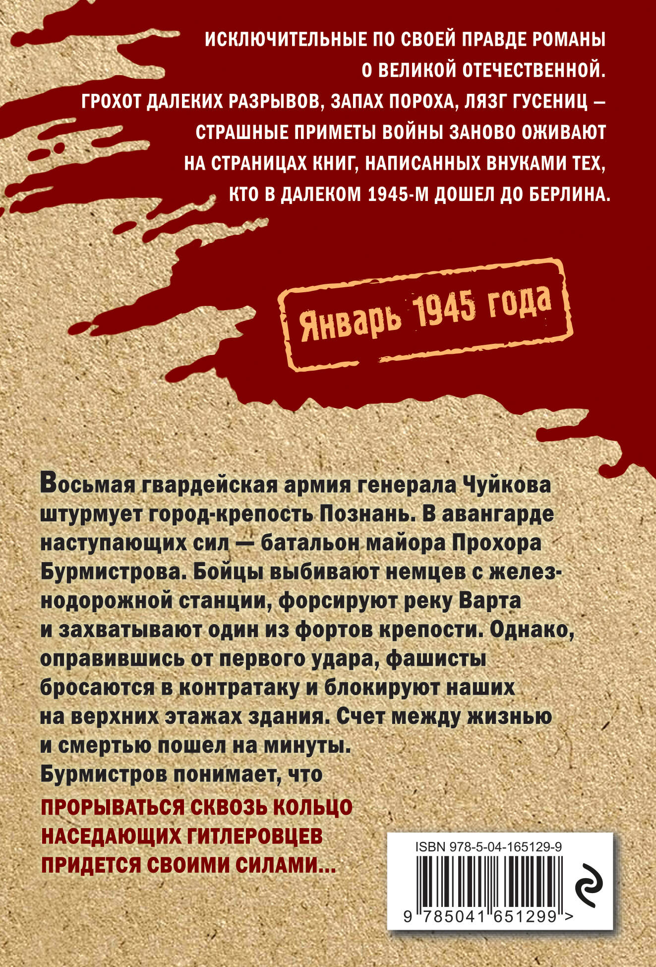 Исключительные по своей правде романы о Великой Отечественной. Грохот далеких разрывов, запах пороха, лязг гусениц - страшные приметы войны заново оживают на страницах книг, написанных внуками тех, кто в далеком 1945-м дошел до Берлина. Январь 1945 года. Восьмая гвардейская армия генерала Чуйкова штурмует город-крепость Познань. В авангарде наступающих сил - батальон майора Прохора Бурмистрова. Бойцы выбивают немцев с железнодорожной станции, форсируют реку Варта и захватывают один из фортов крепости. Однако, оправившись от первого удара, фашисты бросаются в контратаку и блокируют наших на верхних этажах здания. Счет между жизнью и смертью пошел на минуты. Бурмистров понимает, что прорываться сквозь кольцо наседающих гитлеровцев придется своими силами…| Издательство | Эксмо |