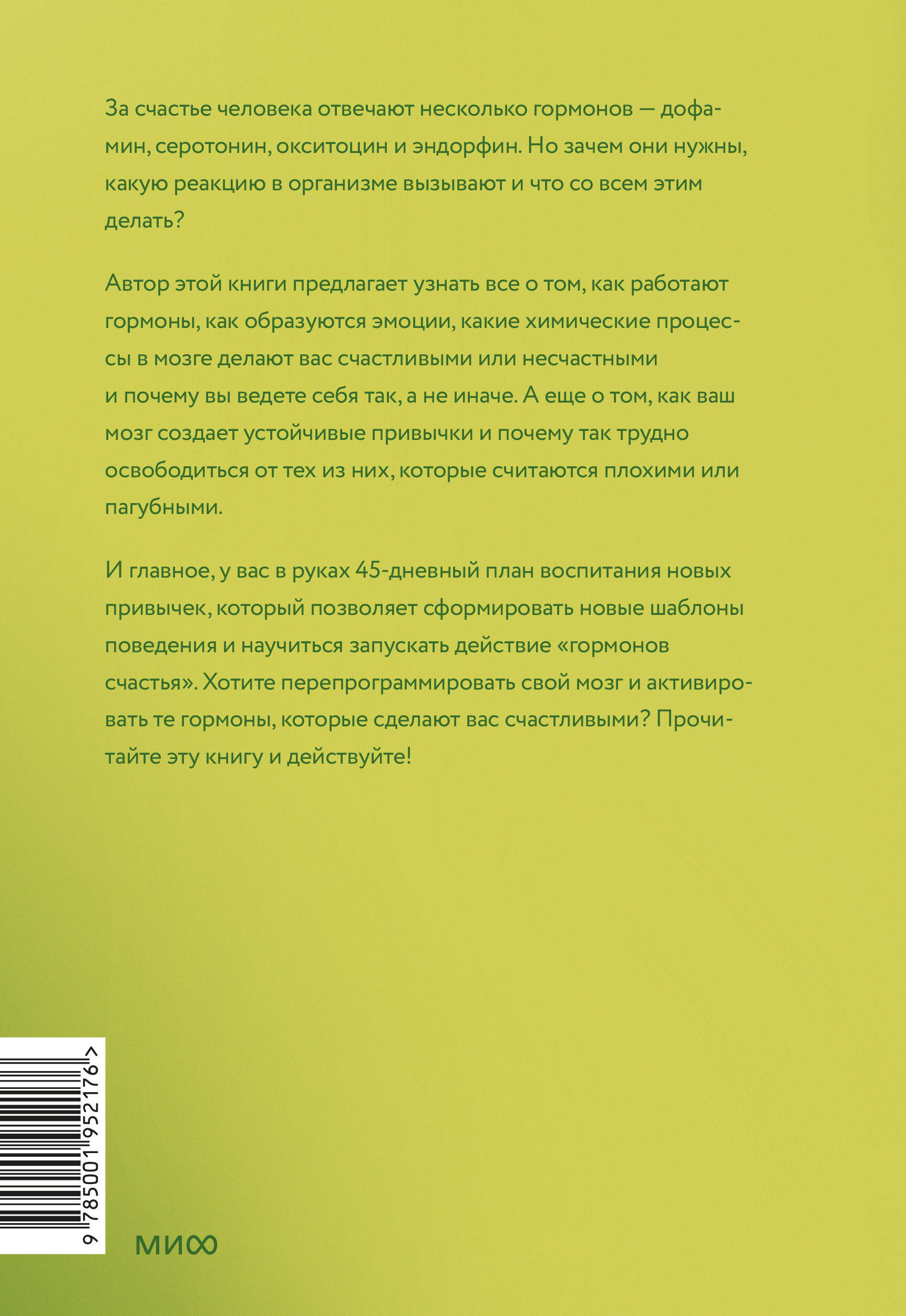 Эта книга о том, как "перепрошить" свой мозг и активировать те гормоны, которые делают нас счастливыми, как за 45 дней сформировать новые шаблоны поведения и запустить их действие.| Издательство | Манн, Иванов и Фербер |