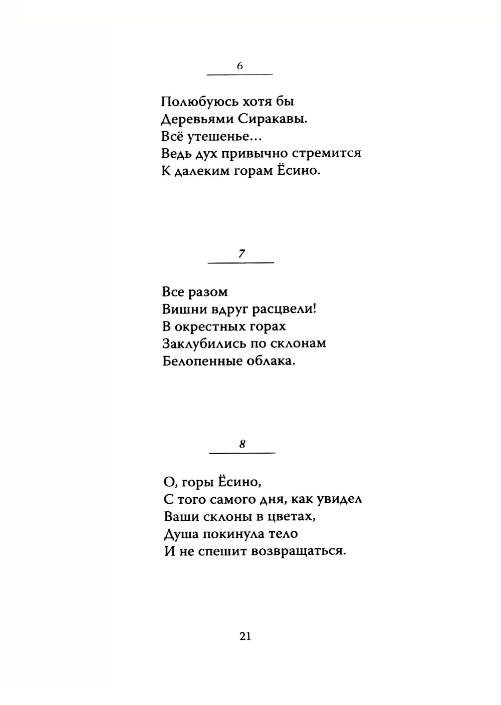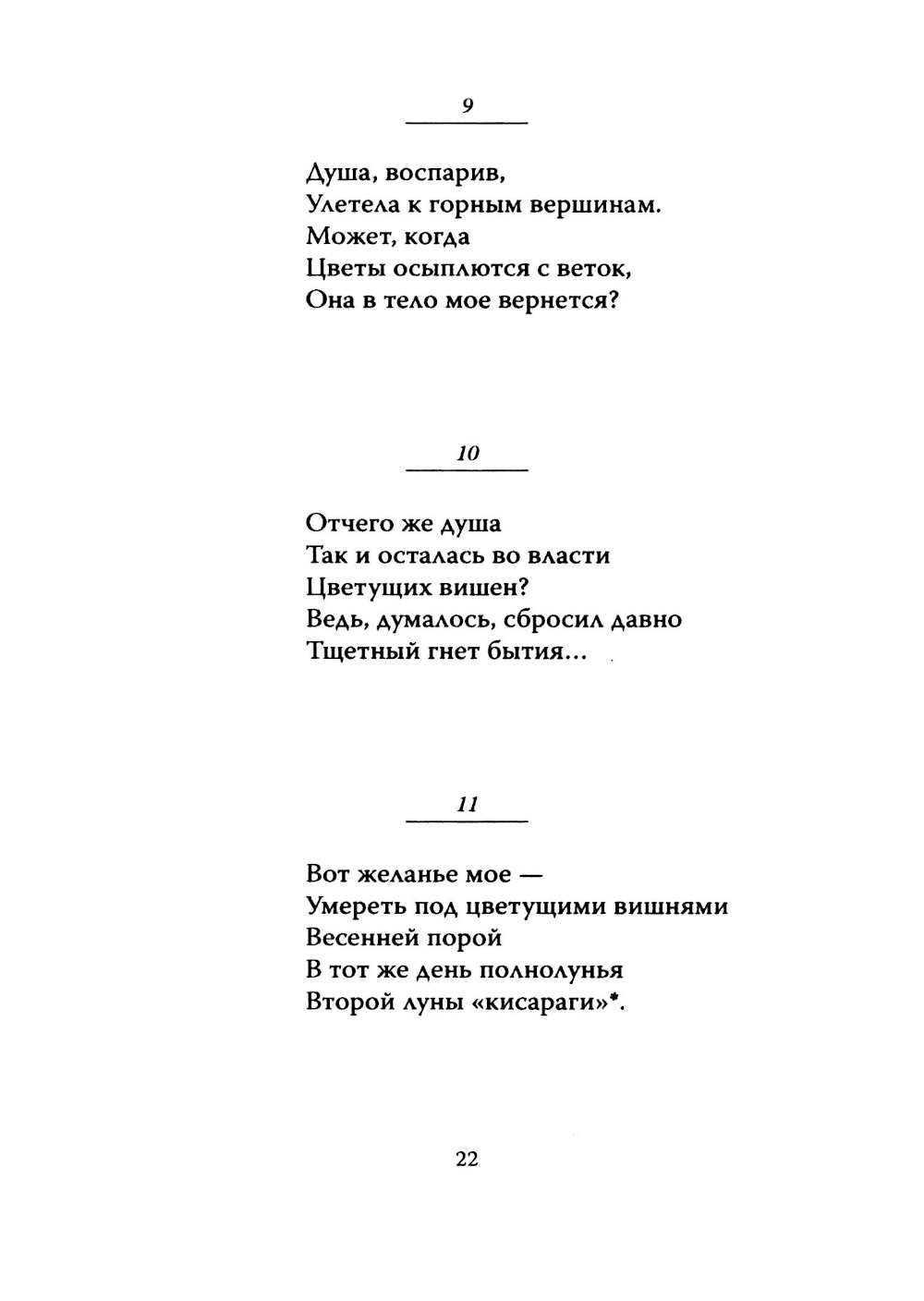 Сайгё (1118-1190) - один из величайших японских поэтов. Он был кумиром Мацуо Басё и многих других корифеев стихосложения. После смерти имя его обросло мифами и легендами, которые, будучи собранными и обработанными, составили текст «Сайгё-моногатари» (Сказаний о Сайгё, в.), вошедший в эту книгу. Представленная здесь же поэтическая антология танка «Горная хижина. Самое сокровенное» (Санкасинтюсю) состоит из 374 стихотворений. В одной из рукописных копий этой антологии есть небольшая приписка, смысл которой сводится к следующему: однажды Сайгё попалось на глаза переписанное кем-то собрание его стихов «Горная хижина» (Санкасю), состоявшее из 1300 стихотворений. Некоторые из стихов показались ему не совсем удачными, поэтому он решил выбрать лучшие и составить новый сборник. Так возникла поэтическая антология танка «Горная хижина. Самое сокровенное».