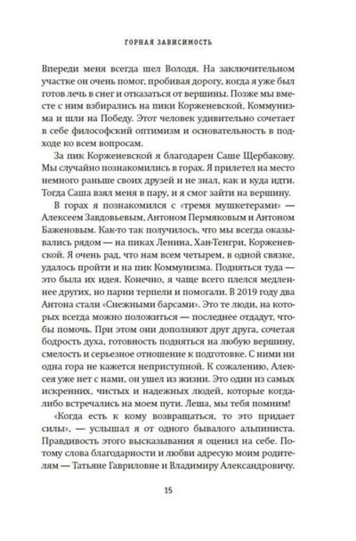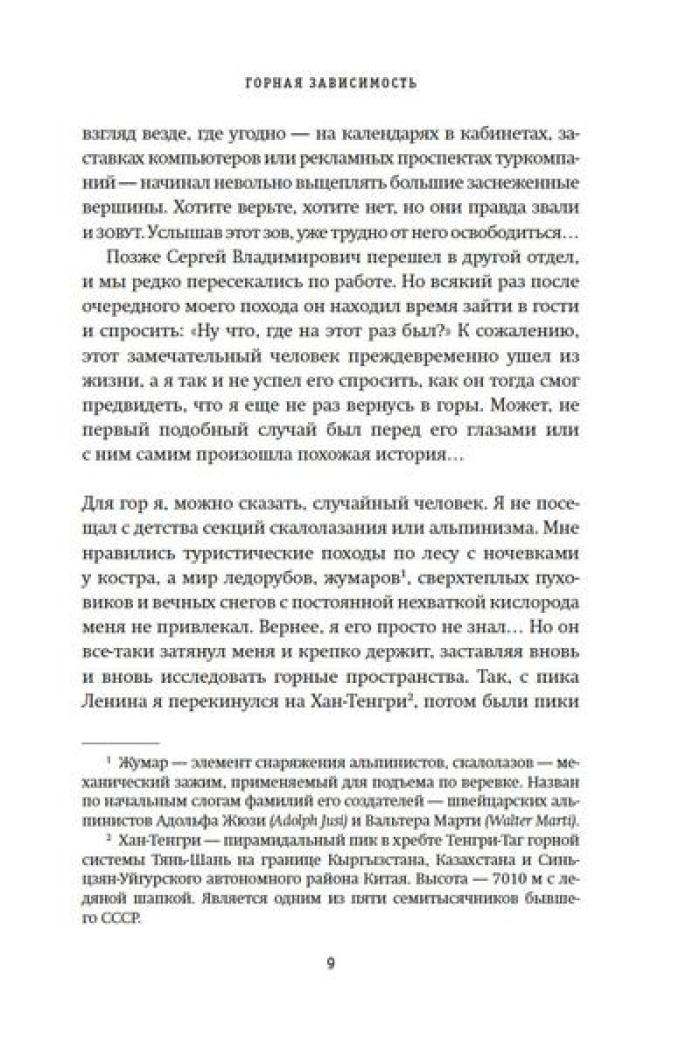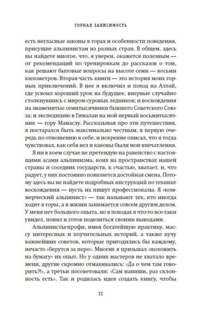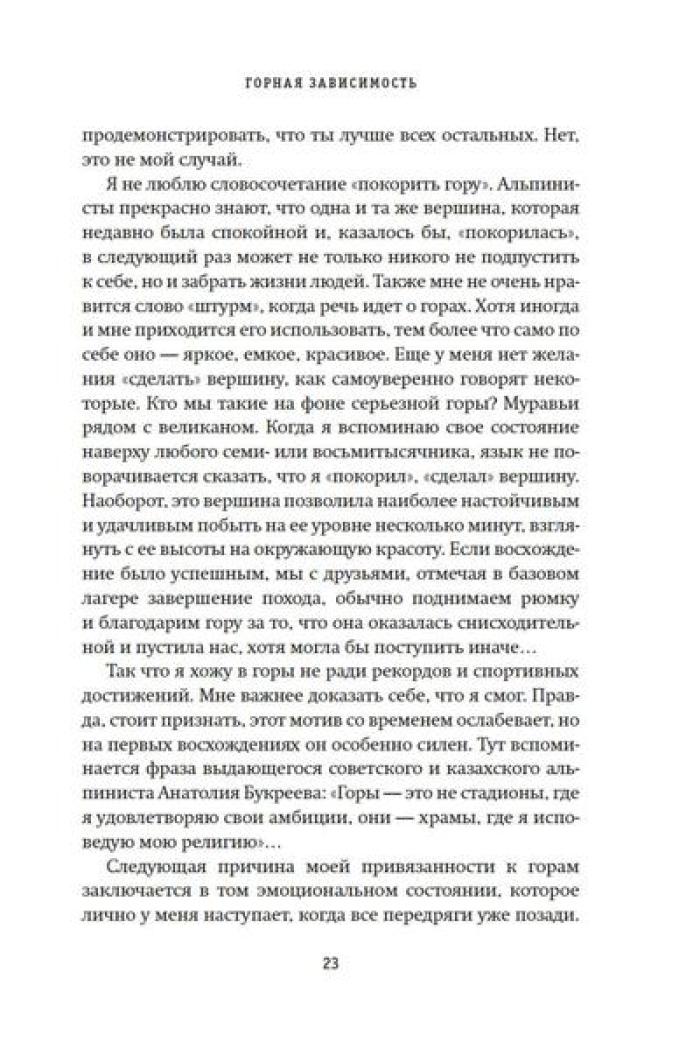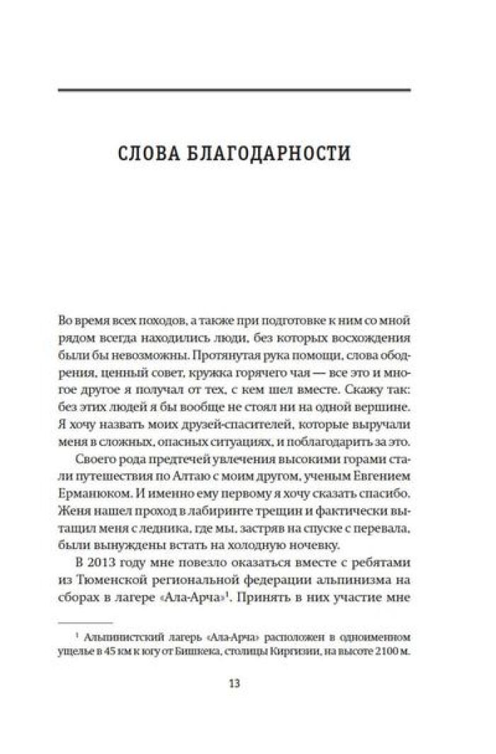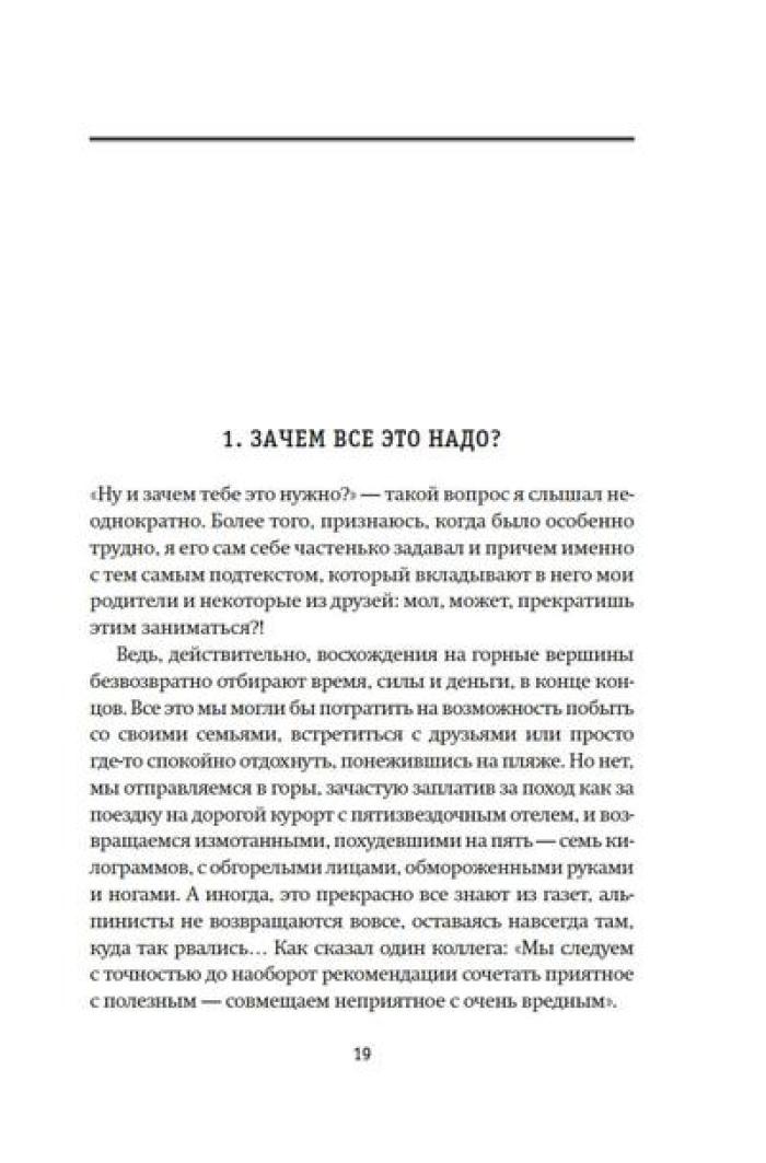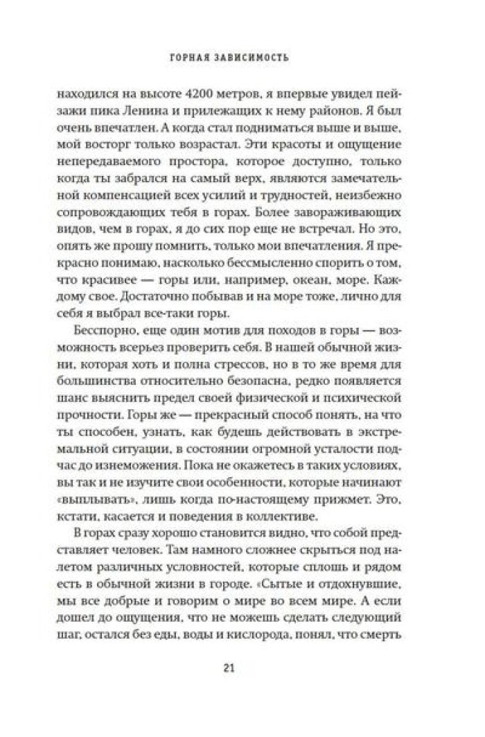 Олег Кирьянов - востоковед, журналист, специалист по Корейскому полуострову, где прожил и проработал более 20 лет. Но подлиная страсть Олега Кирьянова - горы. Его увлечение альпинизмом началось больше десяти лет назад, и за это время он успел покорить пик Коммунизма (Исмоила Сомони), пик Ленина (Абу Али Ибн Сины), пик Корженевской (Озоди), Хантенгри, Эверест, Лхоцзе, Манаслу, Ама-Даблам, Мера-пик и Лобуче. Вместе с автором вы подниметесь на все семитысячники бывшего СССР, переживете настоящую бурю на высоте 6000 метров, станете свидетелем спасательных операций, увидите опасные миражи и покорите новые вершины. А еще получите множество советов для начинающего альпиниста, ведь, кто знает, может, и вы тоже испытаете «горную зависимость».| Издательство | КоЛибри |
