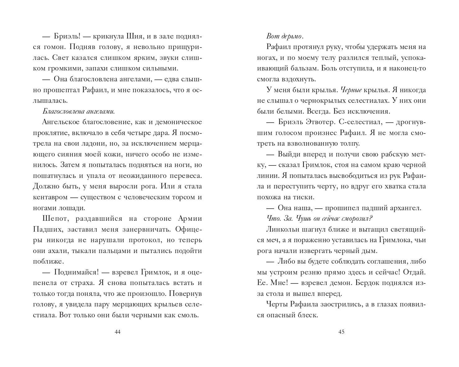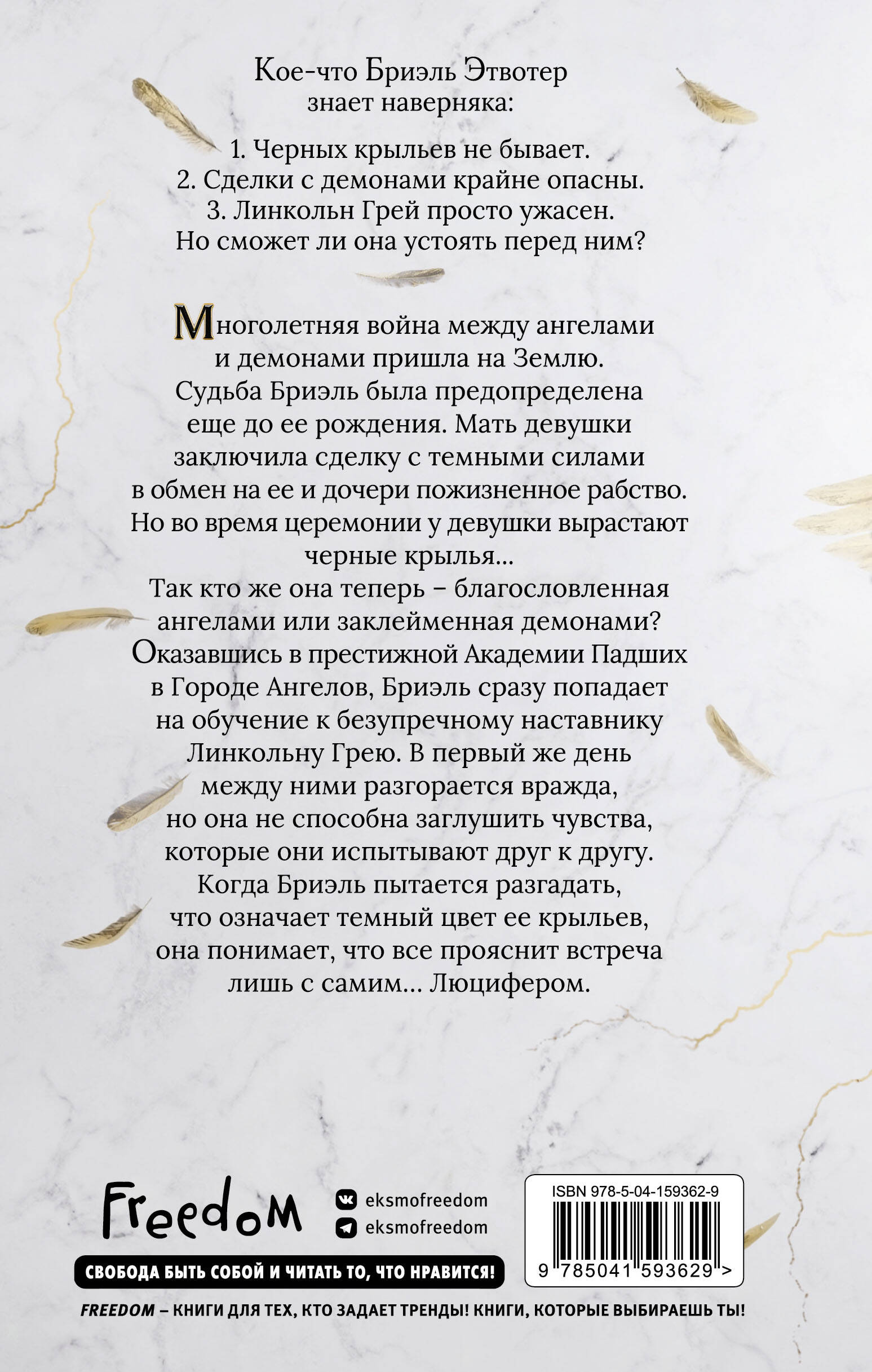 Для тех, кому понравились «Ангельская сага» Мары Вульф и «Изара» Юлии Диппель! Совершенно новая история об ангелах и демонах, действие которой происходит на территории современного Лос-Анджелеса! Серия была продана суммарным тиражом более 500 000 экземпляров, а также ее планируют экранизировать! Кое-что Бриэль Этвотер знает наверняка: 1. Черных крыльев не бывает. 2. Сделки с демонами крайне опасны. 3. Линкольн Грей просто ужасен. Но сможет ли она устоять перед ним? Многолетняя война между ангелами и демонами пришла на Землю. Судьба Бриэль была предопределена еще до ее рождения. Мать девушки заключила сделку с темными силами в обмен на ее и дочери пожизненное рабство. Но во время церемонии у девушки вырастают черные крылья... Так кто же она теперь - благословленная ангелами или заклейменная демонами? Оказавшись в престижной Академии Падших в Городе Ангелов, Бриэль сразу попадает на обучение к безупречному наставнику Линкольну Грею. В первый же день между ними разгорается вражда, но она не способна заглушить чувства, которые они испытывают друг к другу. Когда Бриэль пытается разгадать, что означает темный цвет ее крыльев, она понимает, что все прояснит лишь встреча с самим… Люцифером.| Издательство | ООО "Издательство "Эксмо" |