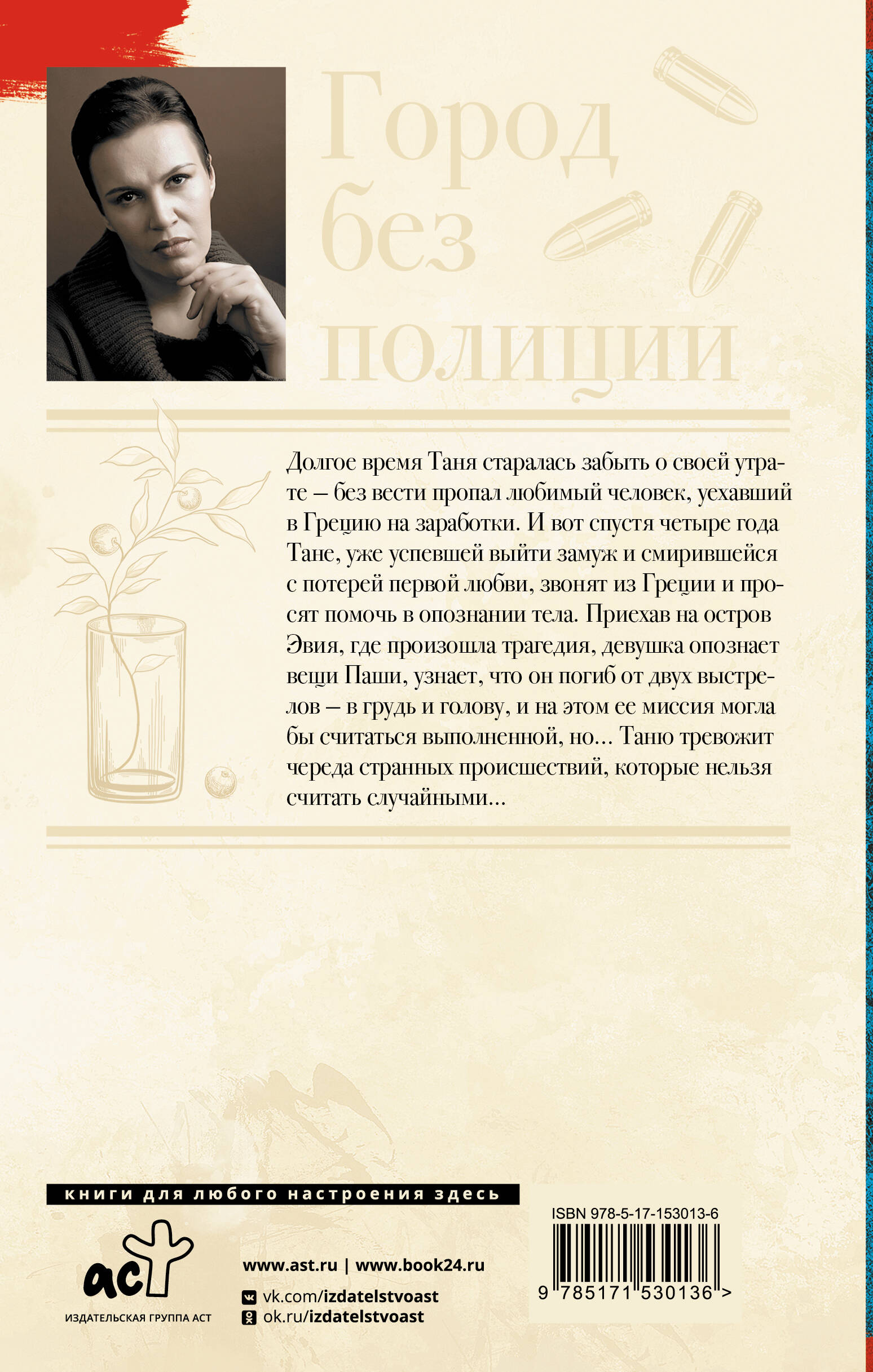 Долгое время Таня старалась забыть о своей утрате - без вести пропал любимый человек, уехавший в Грецию на заработки. И вот спустя четыре года Тане, уже успевшей выйти замуж и смирившейся с потерей первой любви, звонят из Греции и просят помочь в опознании тела. Приехав на остров Эвию, где произошла трагедия, девушка опознает вещи Паши, узнает, что он погиб от двух выстрелов - в грудь и голову, и на этом ее миссия могла бы считаться выполненной, но… Таню тревожит череда странных происшествий, которые нельзя считать случайными...| Издательство | ИЗДАТЕЛЬСТВО "АСТ" |