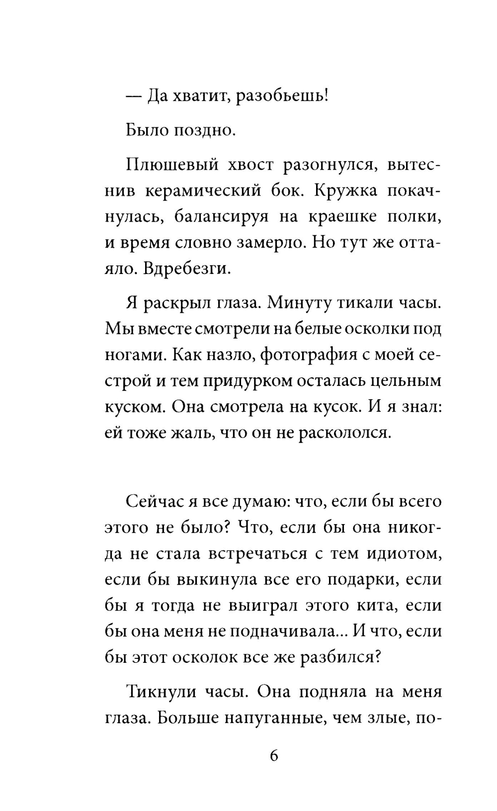 Ты разбиваешь чашку. Разбиваешь чужие плохие воспоминания, разбиваешь ваши же отношения на ближайшие месяцы. По семье проходит заметная трещина. Чтобы ее заживить, ты собираешь вещи и отправляешься на поиски. Ты найдешь себя с рюкзаком и плюшевым китом под мышкой в брошенной бухте, найдешь себя в окружении сбрендивших местных жителей на рынке, в катакомбах старого маяка, у сломанной мельницы, между ветряными колокольчиками кладбища, на борту судна проклятого капитана ина Обратной Стороне земли. На Безымянном острове, которого нет ни на одной карте... Ты просто разбиваешь чашку.| Издательство | ООО СмартБук |