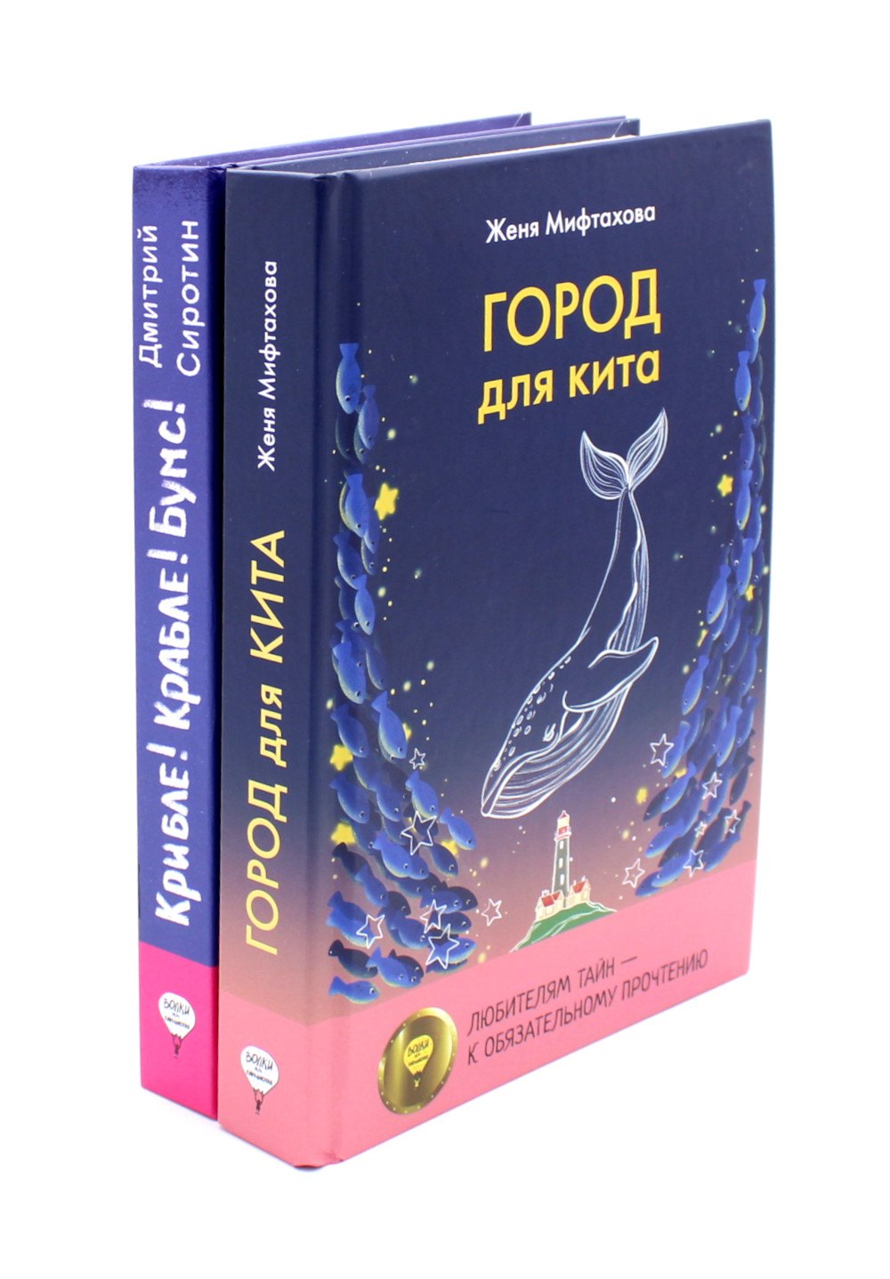 Комплект из 2 книг: «Город для кита» Ты разбиваешь чашку. Разбиваешь чужие плохие воспоминания, разбиваешь ваши же отношения на ближайшие месяцы. По семье проходит заметная трещина. Чтобы ее заживить, ты собираешь вещи и отправляешься на поиски. Ты найдешь себя с рюкзаком и плюшевым китом под мышкой в брошенной бухте, найдешь себя в окружении сбрендивших местных жителей на рынке, в катакомбах старого маяка, у сломанной мельницы, между ветряными колокольчиками кладбища, на борту судна проклятого капитана и на Обратной Стороне земли. На Безымянном острове, которого нет ни на одной карте... Ты просто разбиваешь чашку. «Крибле-крабле-бумс!» Главный герой сказочной повести Дмитрий Сиротина Крибле-крабле-бумс! Кай Иванович, оставшись один на земле, записывает подкат Последний человек, в котором рассказывает о своей жизни. Школа и первая любовь, болезнь с которой ни как не получается справиться, и экстрасенс Марта, театр, мама и наконец, неведомый Сказочник, произносящий свое загадочное Крибле, крабле, бумс!. Обыкновенная жизнь обыкновенного подростка становится вдруг таинственной и необъяснимой. Действительно ли мальчик со странным именем Кай Иванович - последний на земле человек? Что же произошло на самом деле? И что будет дальше? Писатель Дмитрий Сиротин - победитель первого сезона премии по детской литературе Волки на парашютах.