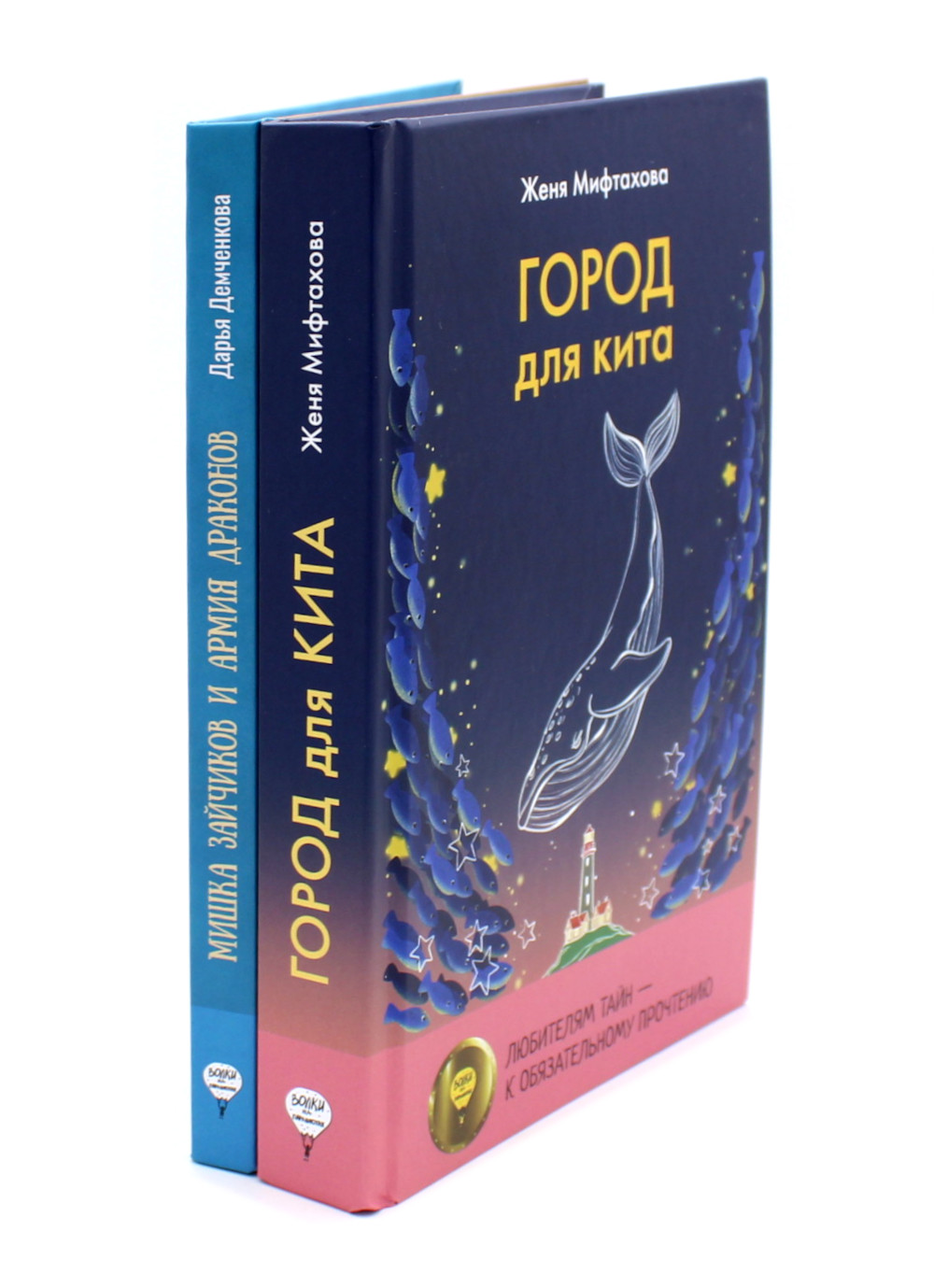 Комплект из 2 книг: «Город для кита» Ты разбиваешь чашку. Разбиваешь чужие плохие воспоминания, разбиваешь ваши же отношения на ближайшие месяцы. По семье проходит заметная трещина. Чтобы ее заживить, ты собираешь вещи и отправляешься на поиски. Ты найдешь себя с рюкзаком и плюшевым китом под мышкой в брошенной бухте, найдешь себя в окружении сбрендивших местных жителей на рынке, в катакомбах старого маяка, у сломанной мельницы, между ветряными колокольчиками кладбища, на борту судна проклятого капитана и на Обратной Стороне земли. На Безымянном острове, которого нет ни на одной карте... Ты просто разбиваешь чашку. «Мишка Зайчиков и Армия драконов» Как быть простым школьникам, нашедшим самого настоящего джина и узнавшим, что давным-давно под землей волшебник спрятал целую армию драконов? Конечно же, бежать навстречу приключениям! Друзей ждут путешествия в новые миры, противостояние коварной королеве вампиров, поиск таинственной Долины Драконов и проверка дружбы на прочность!