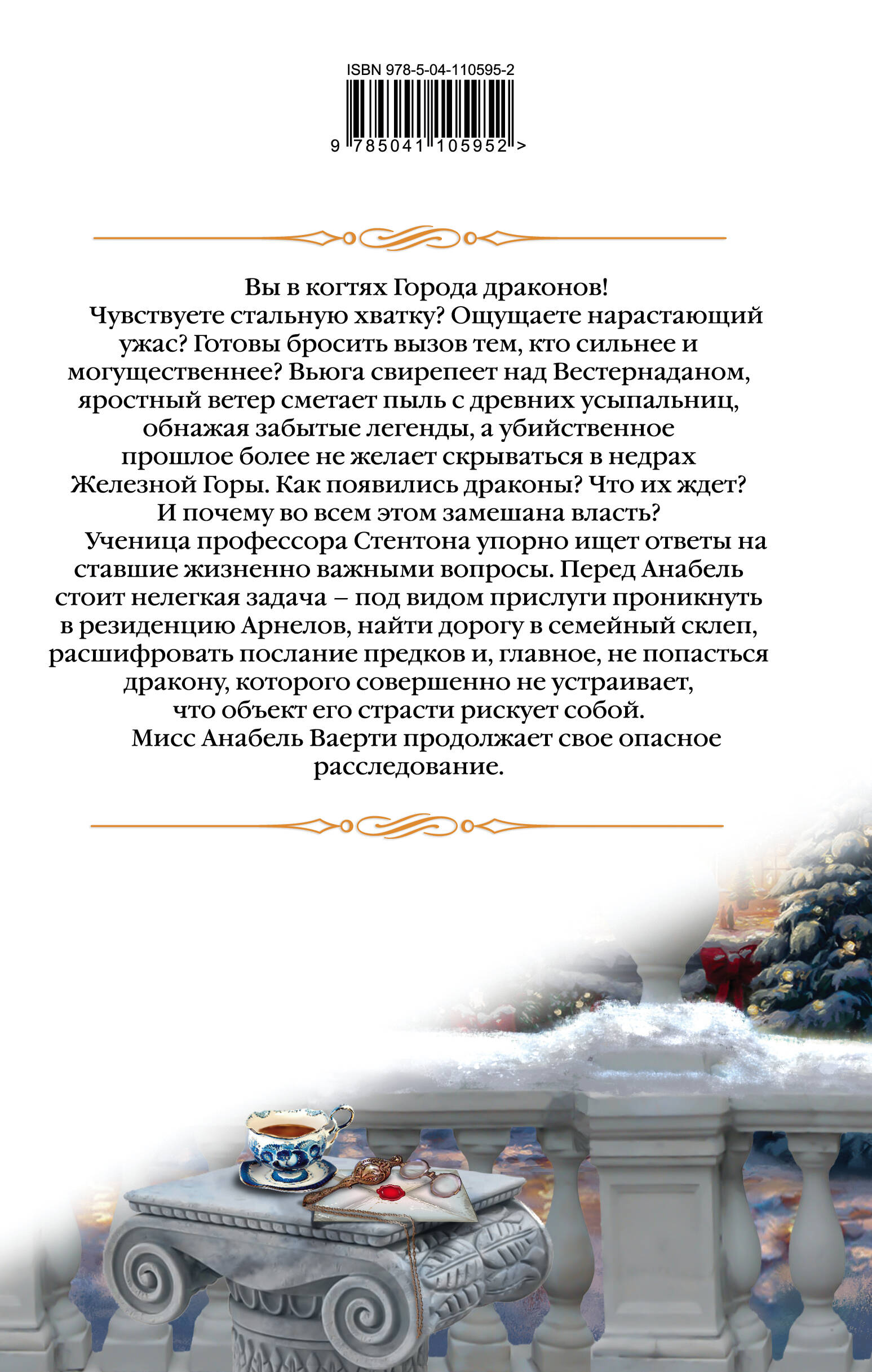 Вы в когтях Города Драконов! Чувствуете стальную хватку? Ощущаете нарастающий ужас? Готовы бросить вызов тем, кто сильнее и могущественнее? Вьюга свирепеет над Вестернаданом, яростный ветер сметает пыль с древних усыпальниц, обнажая забытые легенды, а убийственное прошлое более не желает скрываться в недрах Железной Горы. Как появились драконы? Что их ждет? И почему во всем этом замешана власть? Ученица профессора Стентона упорно ищет ответы на ставшие жизненно важными вопросы. Перед Анабель стоит нелегкая задача - под видом прислуги проникнуть в резиденцию Арнелов, найти дорогу в семейный склеп, расшифровать послание предков и, главное, не попасться дракону, которого совершенно не устраивает, что объект его страсти рискует собой. Мисс Анабель Ваерти продолжает свое опасное расследование.| Издательство | ООО "Издательство "Эксмо" |