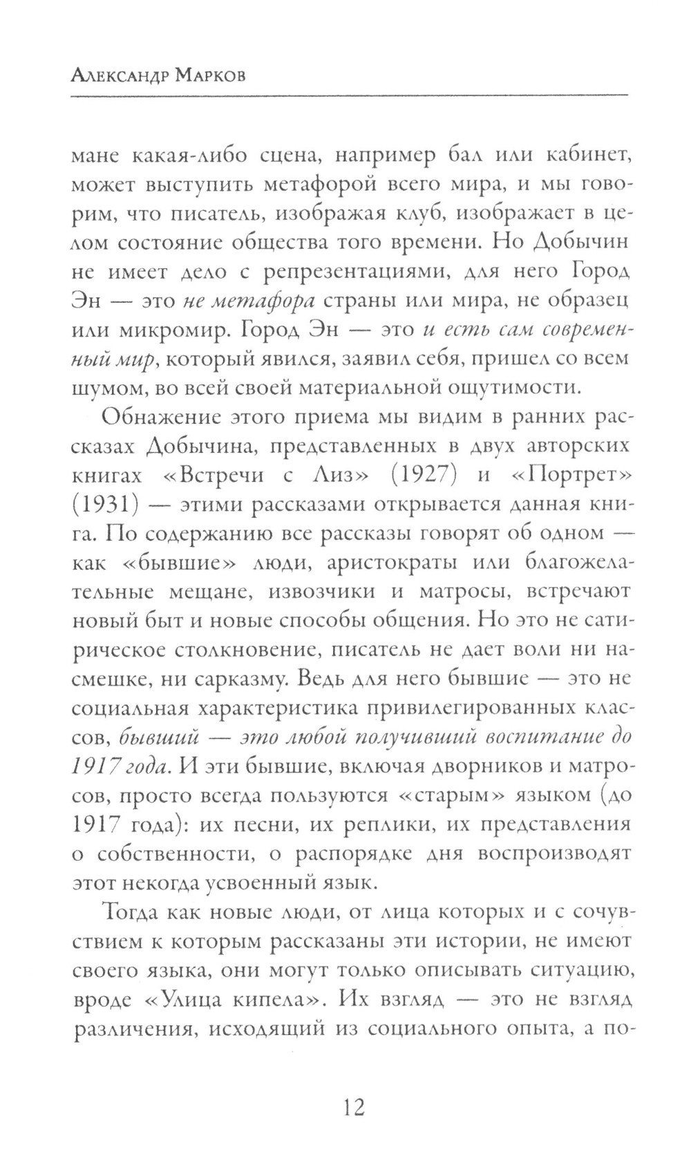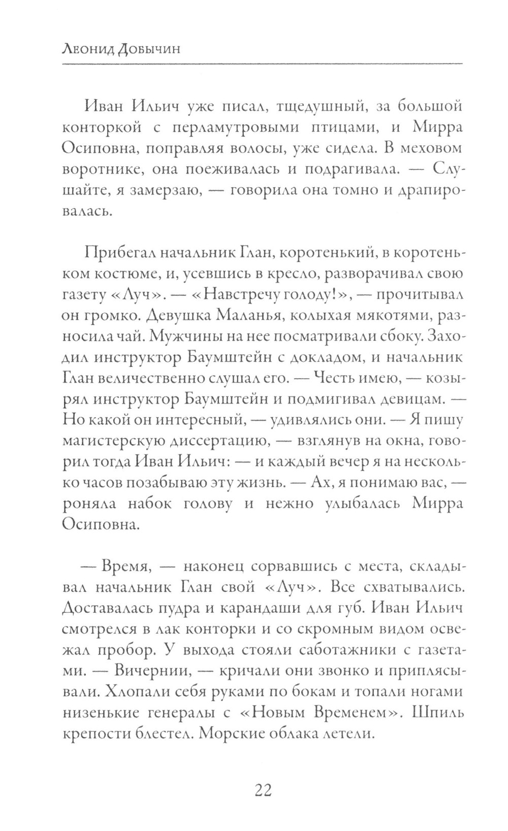О Леониде Ивановиче Добычине (1894-1936) сложно рассказывать вне печально-привычных выражений: "трагическая фигура", "незаслуженно осужденный", "исчезнувший", "забытый"... Он - скромный статист из брянского Губстатбюро, предпочитал, чтобы имя его в печати не раскрывали: "Только "Л. Добычин", а не "Леонид", как некоторые мерзавцы неизвестно на каком основании практикуют". В талант прозаика особенно верил Корней Чуковский, публикуя его рассказы и помогая знакомиться с другими писателями. С момента восхождения Добычина в советской литературе последовало жесткое порицание за формализм: в 1936 году началась травля первого и единственного романа "Город Эн", что оскорбило и обидело автора. Предположительно он покончил с собой сразу после заседания 25 марта в ленинградском Доме писателей, "отправился в далекие края". Австрийская исследовательница Элизабет Маркштейн говорила, что его синтаксис - синтаксис абсурда. "Инфантилизм" можно считать основной психологической установкой Добычина в "Городе Эн". Это роман взросления, "разрушающий своей дискретностью моноритм "взрослого" сознания". В сборник вошли и основные рассказы автора, такие как "Встречи с Лиз", "Дориан Грей", "Ерыгин" и некоторые другие.| Издательство | Рипол Классик |