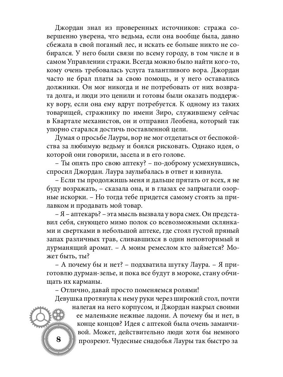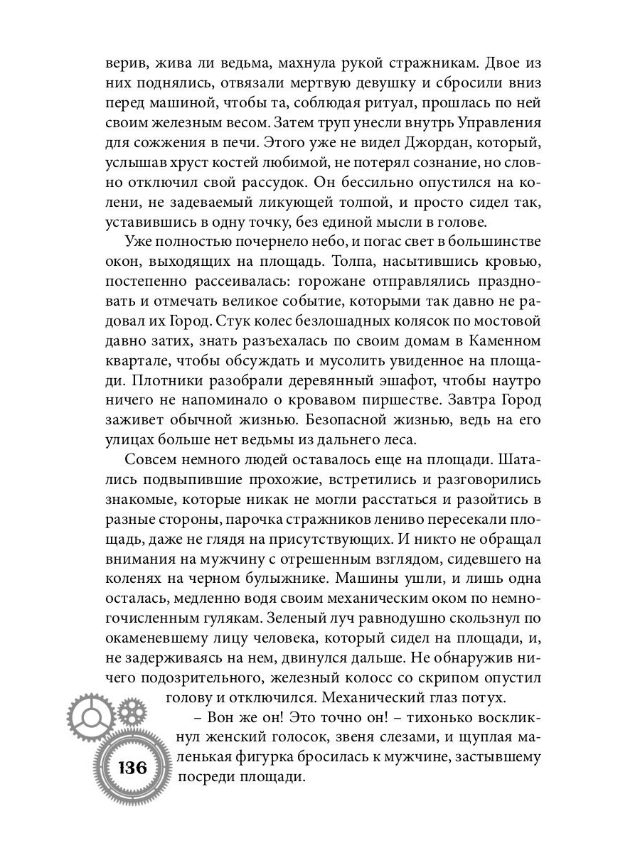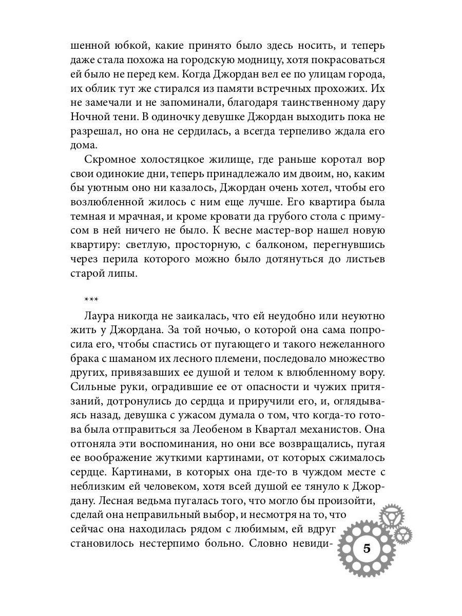 Казалось, что все наконец наладилось и мир пришел в равновесие. Охота на ведьму прекратилась. Ее оставили в покое и позволили любить и быть любимой. Беглецам удалось скрыться в Квартале Механистов, и им больше ничего не угрожает. В Новом городе они нашли свое место и даже друзей. Железный стражник получил красивое золотое лицо и надежду на взаимную любовь с прекрасной лесной нимфой. Даже мастер-вор подумывает оставить свое ремесло и зажить спокойной жизнью со своей возлюбленной. Но Город ненасытен. Он не может принять чужое спокойствие и счастье и жаждет новых жертв. И не забывает о своем предназначении загадочный шаман из дальнего леса.| Издательство | Т8 RUGRAM |