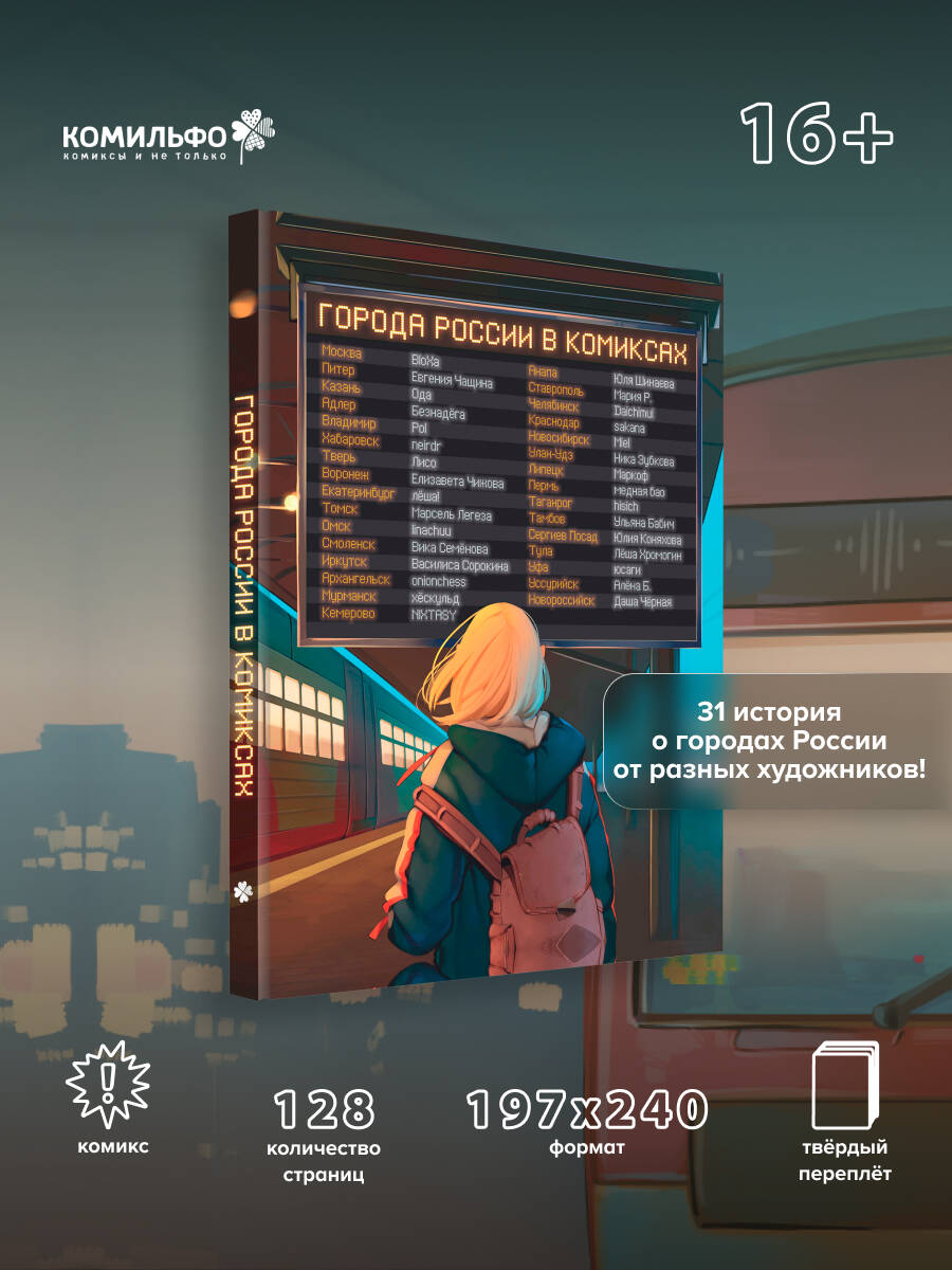31 комикс-история о 31 городе России! Каждый город уникален - как уникальны и живущие там люди. В этой книге популярные художники из разных городов рассказывают совершенно разные истории: кто-то показывает достопримечательности, кто-то - любимое место, с которым связаны важные воспоминания, а кто-то придумывает историю, которая познакомит нас с духом места. Но каждый комикс в первую очередь о любви - любви к городам, где мы растём, учимся и живём, таких разных и таких уникальных. Для вас рисовали: - Москва - BloXa; - Санкт-Петербург - Евгения Чащина; - Екатеринбург - Лёша!; - Адлер - БЕЗНАДЁГА; - Хабаровск - neirdr; - Архангельск - onionchess; - Омск - linachuu. И многие другие!| Издательство | ООО "Издательство "Эксмо" |