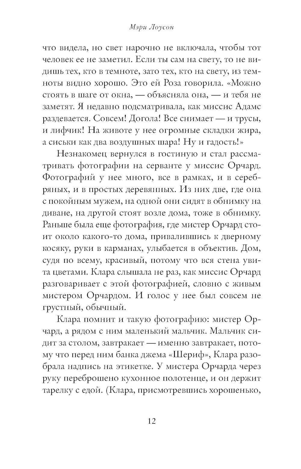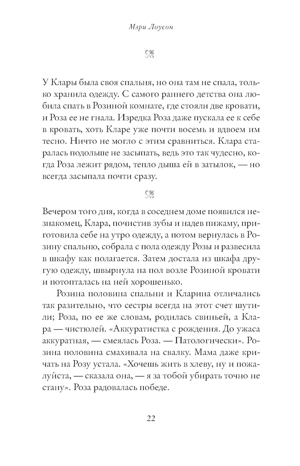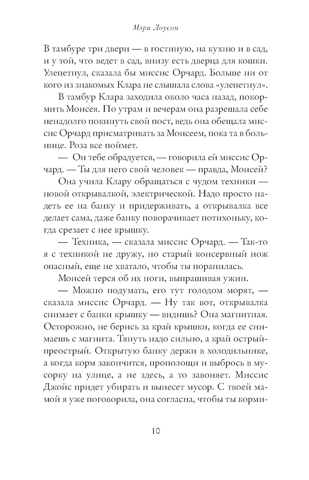Полный чувств, нежности, мягкой иронии роман о семье, охватывающий больше десятилетия. Юная бунтарка Роза пропала, ее младшая сестра Клара проводит дни у окна, надеясь увидеть, как та возвращается. Девочка наблюдает, как в соседний дом входит незнакомый мужчина. Клара прекрасно знает, что в доме живет одинокая Элизабет, которая сейчас находится в больнице. Клара пообещала соседке присматривать за домом, а главное - за оставшимся жильцом, котом Мозесом. История, рассказанная с трех точек зрения: Клары, Элизабет и вселившегося в дом Лайма - перемещает фокус с одного героя на другого, раскрывая все новые пласты драматических событий, прошлых, и нынешних, любви, горечи, привязанности, отчужденности. Замечательно написанный, чуть тревожный и очень человечный роман, в котором нет бушующих страстей, но есть много искренних и глубоких чувств.| Издательство | Фантом Пресс |