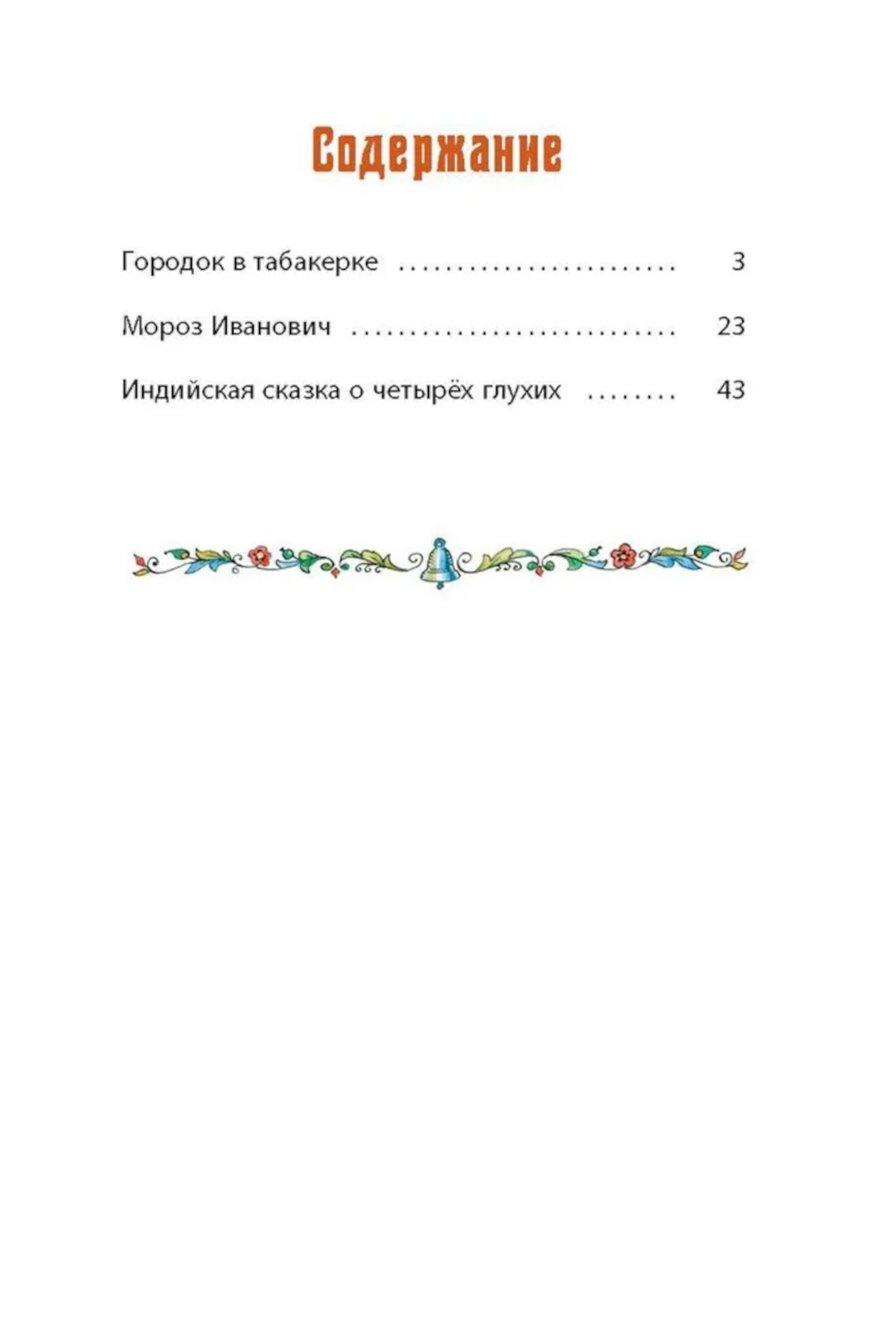 Владимира Федоровича Одоевского (1804-1869) считают одним из первых детских писателей в России. Он признавал детскую литературу важнейшей частью воспитания и развития ребенка, считал, что сказки должны будить воображение, учить наблюдательности, трудолюбию, воспитывать в человеке любознательность и доброту. В этот сборник вошли самые известные произведения В. Ф. Одоевского для детей - «Городок в табакерке», «Мороз Иванович», «Индийская сказка о четырёх глухих». Иллюстрации к сказкам создал блестящий мастер книжной иллюстрации Анатолий Михайлович Елисеев. Его легко узнаваемые, выразительные образы детей и сказочных персонажей делают чудесные сказки еще более яркими и запоминающимися. Для младшего школьного возраста.| Издательство | ЭНАС-КНИГА |