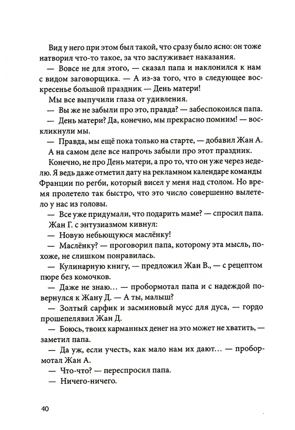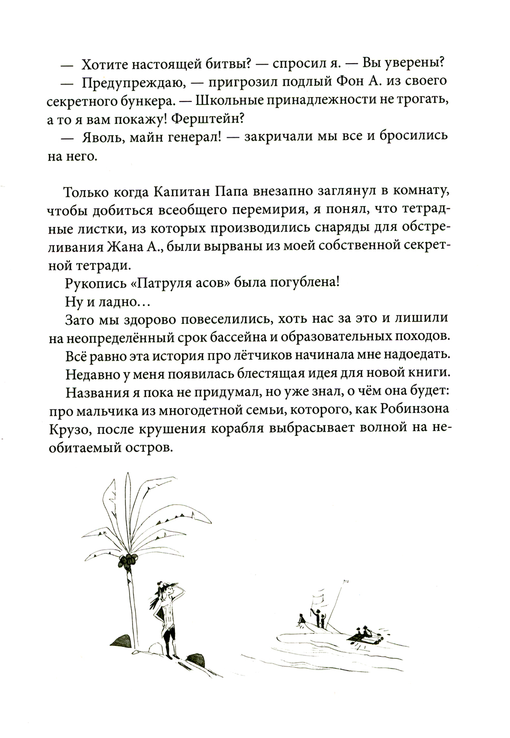 Если вы думали, будто у Жан-Филиппа Арру-Виньо закончились весёлые и трогательные истории из детства, то вы, к счастью, ошибались! Семейка из Шербура настолько неугомонна, что их проказ хватило бы и на двадцать книг. Но пока - седьмая и последняя: долгожданное продолжение «Омлета с сахаром», «Летающего сыра», «Шашлычка из редисок» и других любимых сборников. Приключения в большой шербурской семейке возникают как-то сами собой, в ничего не предвещающих на первый взгляд обстоятельствах. Поход в библиотеку - чем не повод для детективного сюжета с элементами заговора? Тайная рукопись Жана Б. на раз-два провоцирует такую битву подушками и такое метание носков, каких эта детская комната прежде не видывала. Даже долгие зимние вечера - и те полны событий, открытий, вдохновляющих и счастливых моментов. Иначе и не может быть в семействе, где шестеро сыновей, каждого из шестерых мальчишек зовут Жаном, а папа - словно седьмой Жан-сорванец, пусть и чуть-чуть взрослее. Писатель Жан-Филипп Арру-Виньо (родился в 1958 году), известный читателям в образе Жана Б., не ностальгирует по прошлому, а превращает свои воспоминания в уникальный мир настоящего детства, куда хочется возвращаться вновь и вновь. Франция 1960-х годов неожиданно оказывается столь же притягательной и очаровывающей, как Нарния или Средиземье, - а детали жизни обычного человека из прошлого века становятся понятным и привычным окружением для самых необычных приключений. Вся серия оформлена в едином стиле и проиллюстрирована Доминик Корбасон (1958-2018). Лёгкая, карикатурная манера французской художницы вторит озорному стилю текста и добавляет уморительных моментов.| Издательство | ИД КомпасГид |