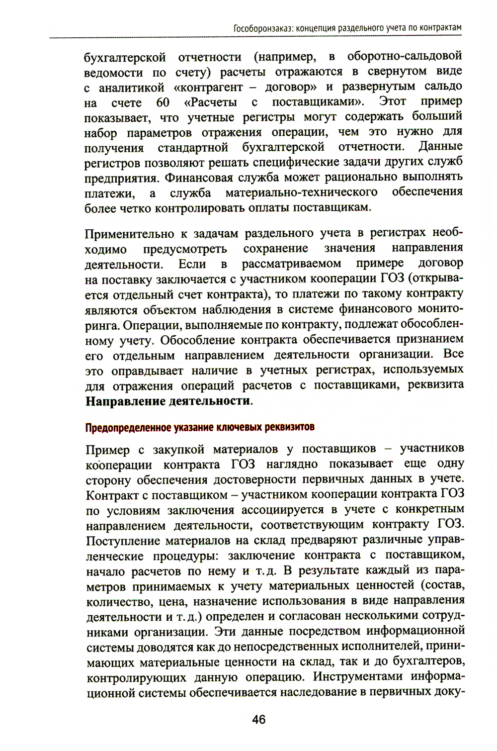 В новой редакции Постановления Правительства РФ от 19.01.1998 № 47 «О правилах ведения организациями, выполняющими государственный заказ за счет средств федерального бюджета, раздельного учета результатов финансово-хозяйственной деятельности» утверждены формализованные правила ведения раздельного учета по контрактам, определена форма отчетности исполнения контрактов. В книге подробно раскрывается концепция раздельного учета: дается определение основных понятий, последовательно раскрываются общие подходы к построению системы раздельного учета на предприятии, раскрывается понятие контрольного правила на примерах. Книга адресована специалистам предприятий, ответственным за организацию раздельного учета и подготовку отчетности исполнения контрактов, а также аудиторским, консалтинговым и внедренческим организациям, занимающимся автоматизацией учета на предприятиях.| Издательство | 1С-Паблишинг |