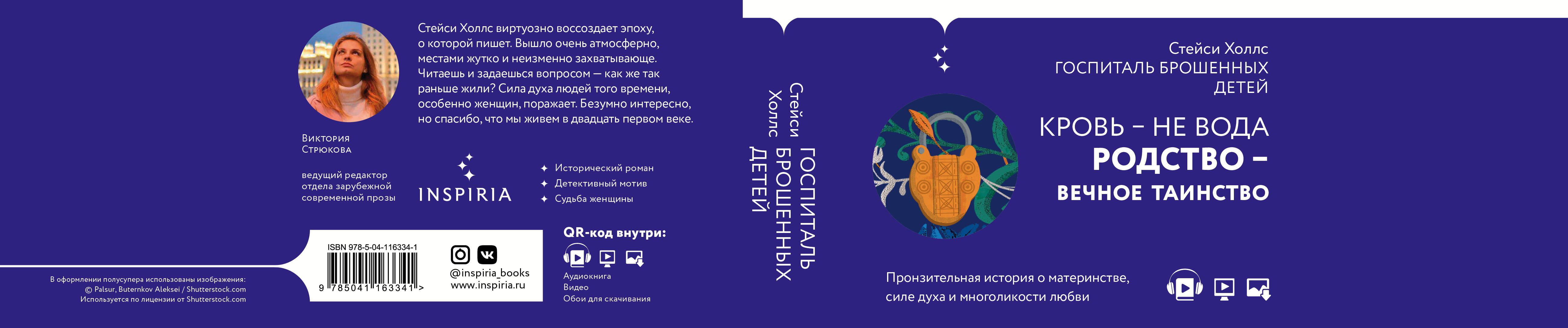 «Стейси Холлс - автор романа «Покровители», самого продаваемого в Великобритании в 2019 году дебюта. Ее новая книга [«Госпиталь брошенных детей»] - исторически достоверный роман о непростых судьбах женщин прошлого». - Cosmopolitan (UK) Действие романа Стейси Холлс происходит в Лондоне георгианской эпохи, в середине XVIII века. Бесс Брайт с отцом Эйбом и братом Недом живут в бедном лондонском квартале. Бесс вместе с отцом работает на рыбном рынке, а Нед подметает улицы и чистит конюшни. Когда Бесс беременеет от зажиточного торговца, ее жизнь раскалывается на до и после. От отца ребенка, который умирает при неясных обстоятельствах, остаются только имя, Дэниэл, и сувенир из китового уса в виде половинки сердца. Поскольку Бесс не в состоянии прокормить новорожденную дочь, она относит девочку в недавно открытый госпиталь для брошенных детей, где принимают младенцев до шести месяцев, а воспитывают и растят до 14 лет, а после определяют девочек в горничные, а мальчиков - на военную службу. Мать может выкупить ребенка, оплатив его пребывание в госпитале, но это происходит крайне редко. Ребенку присваивается регистрационный номер, а мать оставляет памятку, по которой может вернуть ребенка. Бесс оставляет с новорожденной дочерью памятную вещь - половинку сердечка от Дэниэла. После шестилетнего перерыва Бесс удается собрать достаточно денег, чтобы вернуть дочь, но кто-то, назвавшись ее именем, похитил ребенка. Но это ведь невозможно? Неужели никто не заметил подмену?.. *В книгах Inspiria, выпущенных в 2020 году, доступен к прослушиванию только пробный фрагмент аудио. В книгах, выпущенных позже 2020 года, мы предоставляем доступ к полной аудиоверсии.| Издательство | ООО "Издательство "Эксмо" |