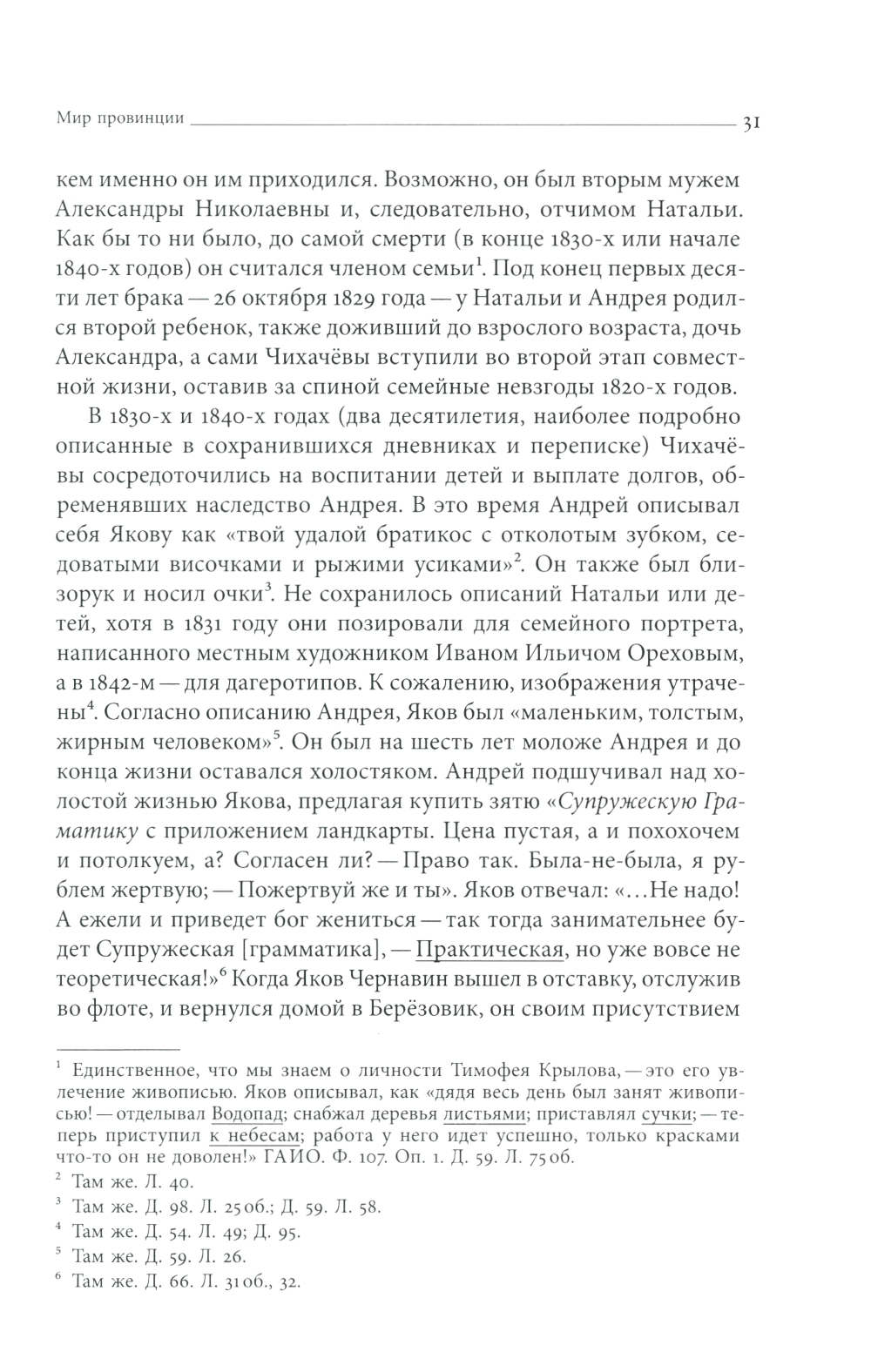 Наши представления о том, как жили русские дворяне XIX века, во многом сформированы чтением классики художественной литературы - от И.С. Тургенева до М.Е. Салтыкова-Щедрина. Микроисторическое исследование К. Пикеринг Антоновой позволяет узнать о повседневной жизни дворян из первых уст. На основе уникальных архивных материалов в книге воссозданы быт и мировоззрение провинциального среднепоместного семейства второй четверти XIX века. В центре внимания - семья жителя Владимирской губернии, мецената и благотворителя Андрея Чихачёва. Документы его архива наполнены заботами о хозяйстве и детях, тревогами об урожае, здоровье, судебных тяжбах с соседями и отношениях с крепостными крестьянами. Анализируя эти материалы, автор раскрывает представления о власти и личности, обществе и вере, просвещении и романтизме, описывает круг общения Чихачёвых и показывает, как понятия и ключевые идеи эпохи распространялись и приживались в условиях российской провинции. В частности, "мужские" и "женские" гендерные роли, присущие господствовавшей в XIX веке идеологии домашней жизни, могли меняться местами (отец семейства занимался воспитанием детей, мать управляла финансами и крестьянами), а консервативные и либеральные идеи мирно сосуществовать в сознании помещиков средней руки. Кэтрин Пикеринг Антонова - специалист по российской истории, преподаватель Куинс-колледжа Городского университета Нью-Йорка (Queens College, CUNY).