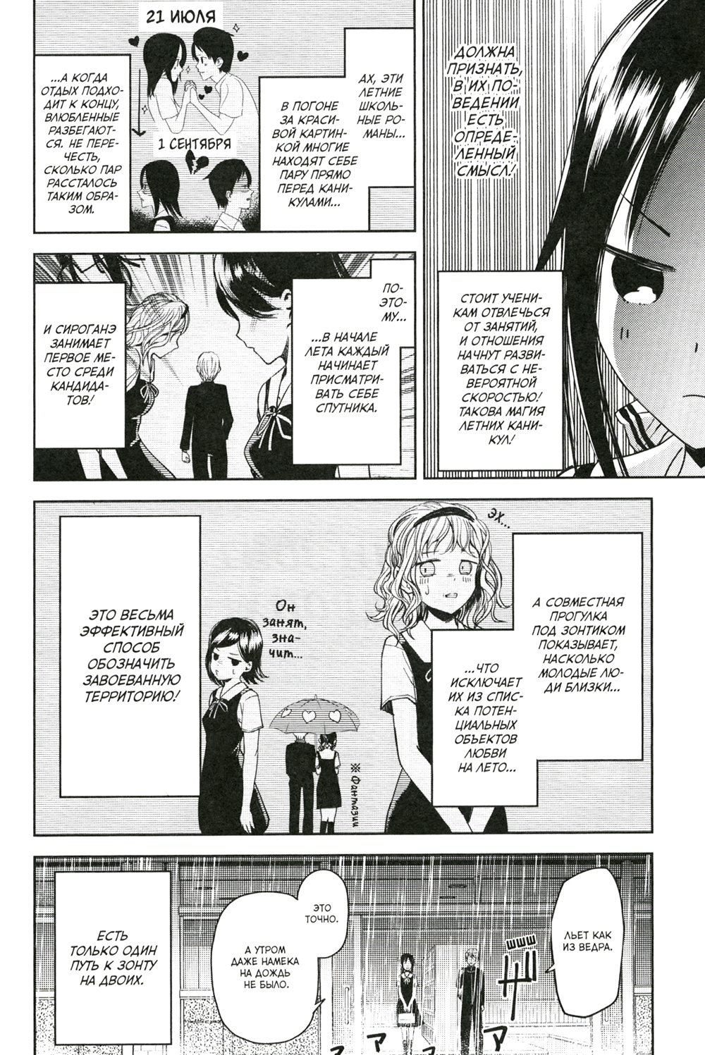 Кагуя Синомия и Миюки Сироганэ возглавляют школьный совет академии Сютиин и уже давно работают бок о бок. никто не сомневался, что между ними вспыхнут чувства! В попытках добиться друг от друга желанного признания они пускают в ход всевозможные уловки и хитрости! На этот раз им предстоит прогуляться под одним зонтом, познакомиться с шутками ниже пояса и столкнуться с казначеем школьного совета Исигами, который не сомневается в том, что Кагуя хочет его убить... Этими и другими проблемами заняты умы самых незаурядных личностей академии накануне итоговых экзаменов. Вот она, любовная битва двух гениев! Интересно, кто же выйдет из нее победителем?| Издательство | Азбука |