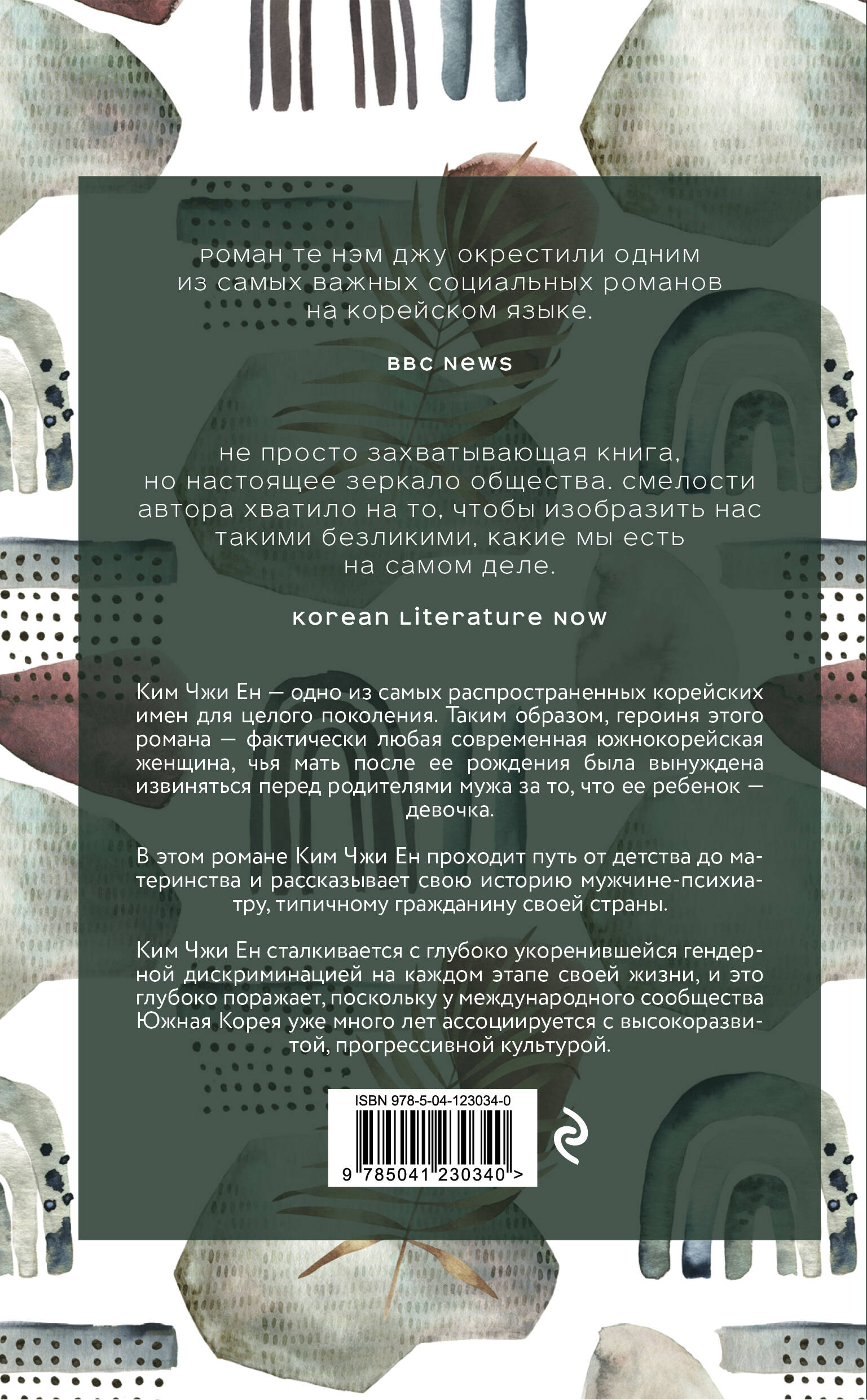 В мире продано более 1,3 миллиона экземпляров в 22 странах. Роман, а затем и его экранизация, вызвали серьезную полемику в обществе (один из главных социальных романов года в Южной Корее и в мире). Роман о роли женщины в прогрессивной стране, где, на первый взгляд, царят либеральный порядки. «Не просто захватывающая книга, но настоящее зеркало общества. Смелости автора хватило на то, чтобы изобразить нас такими безликими, какие мы есть на самом деле». - Korean Literature Now «Книга, издание которой имело уникальные последствия». - RM, участник группы BTS «После прочтения этой книги я посмотрела на многие вещи иначе. Он напомнил мне о несправедливом обращении, с которым я сталкивалась как женщина. Это чувство застало меня врасплох». - Чхве Су Ён, участница группы Girls' Generation «Этот роман - доказательство коллективного женского опыта, который, увы, часто несправедливо принижается». - New York Review of Book| Издательство | ООО "Издательство "Эксмо" |
