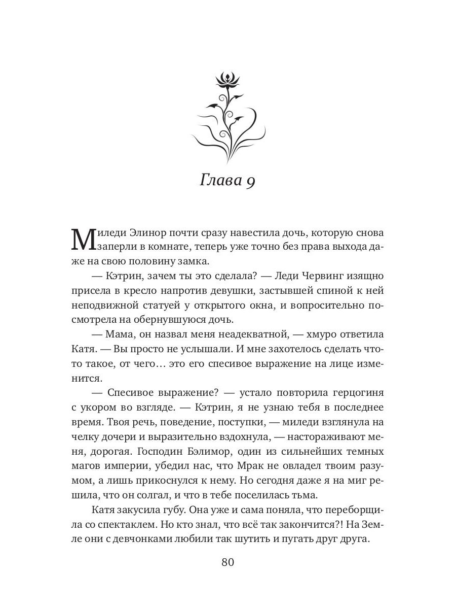 Научитесь правильно формулировать свои желания! Даже если не верите, что ваша подруга - ведьма в десятом поколении! Иначе, как Катя Найденова, землянка и сирота, вдруг окажетесь в другом мире! Правда, Катя мечтала о большой семье и младшем брате и обрадовалась переселению, потому что их сразу и получила. Вот только о женихе Катя не мечтала, хоть он и оказался неотразимым красавцем! Жених хочет расторжения помолвки? Замечательно! Семья очень переживает за Катю… то есть за леди Кэтрин Червинг? Это уже хуже, но всё поправимо. Катя точно знает, что за нее переживать не нужно, ведь она не робкая и молчаливая Кэтрин "с тонкой душевной организацией". Она со всем справится и с гордыми женихами тоже! Потому что умеет радоваться жизни, какой бы сложной та ни была!| Издательство | Т8 RUGRAM |
