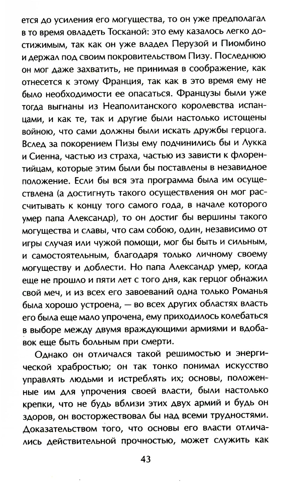 Крылатая фраза «Цель оправдывает средства» стала одной из самых популярных в мире, а «Государь» Никколо Макиавелли (1469-1527) - главной в истории книгой о власти, государстве и политике, навсегда превратившись в настольную для множества государственных лидеров, ведущих политиков и бизнесменов. Этот трактат легендарного политического деятеля, историка и философа эпохи Возрождения, написанный вот уже пять столетий назад, подробно освещает методы управления и все навыки, которые должны быть в арсенале каждого успешного правителя. Глубоко изучив военную историю и учитывая собственный опыт по организации войск Флорентийской республики в другом своем трактате - «О военном искусстве», Макиавелли подверг тщательному анализу стратегию и тактику военных действий (так, он резко критикует вооруженные силы, состоящие из наемников). В данном издании оба величайших трактата опубликованы вместе. Трактат «О военном искусстве» дополнен статьей выдающегося историка Ганса Дельбрюка, в которой подробно разобран этот труд Макиавелли.| Издательство | Яуза-пресс |