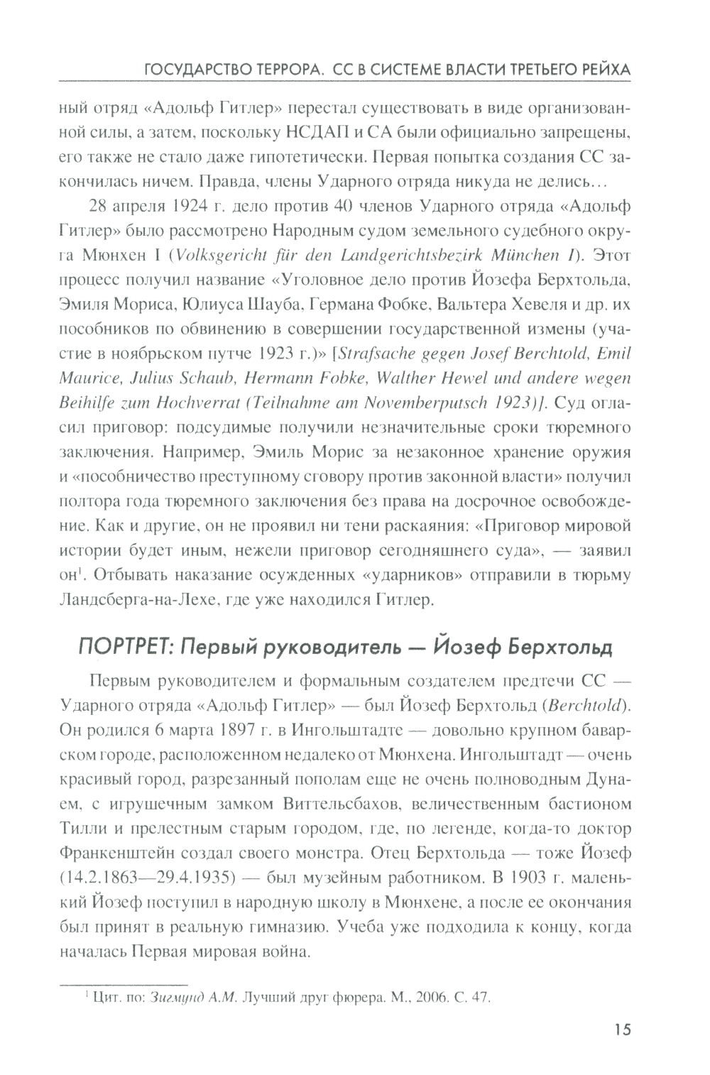 Книга посвящена СС как политической организации внутри нацистского движения, ее месту и роли в Третьем рейхе. Попытка представить СС всего лишь как шайку убийц и карателей - это фальсификация и огрубление истории, перенос на отдельных садистов и патологических убийц ответственности за чудовищный эксперимент как над народами оккупированных стран, так и над самими немцами. СС являлись политической организацией, подразделением нацистской партии, а значит, само признание их преступной организацией автоматически является признанием преступной сущности всего национал-социализма. Эта книга показывает, сколь разветвленной была структура СС. Даже без войск СС, гестапо и концлагерей это была колоссальная преступная паутина, которая опутывала всю Германию и работала над тем, чтобы немецкое общество находилось под полным контролем нацистов, чтобы люди воспитывались в духе нацистской идеологии, готовили будущие управленческие кадры для страны, планируя ее превращение во всемирное нацистско-расистское государство. Этот аспект деятельности СС постоянно уводится на второй план, а всеобщий характер деятельности СС замалчивается или представляется несущественным. Тем самым имеет место фальсификация истории и фактически реабилитация если не всех СС, то их «негестаповских» частей в частности.| Издательство | Вече |