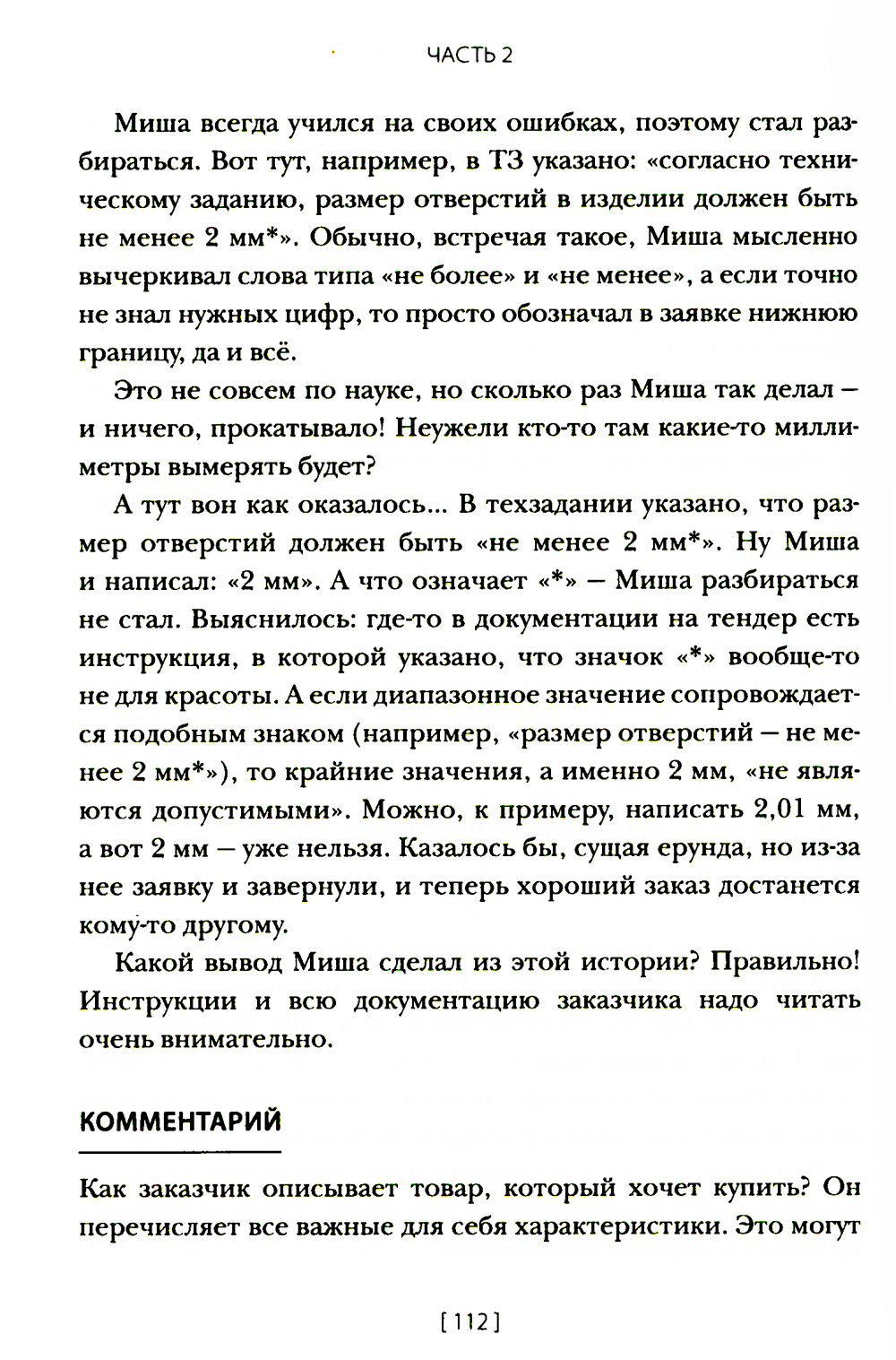 Если вы задумываетесь о старте своего дела или намерены расширить каналы сбыта продукции, эта книга станет для вас незаменимым помощником. В ней доступно, простым языком и очень подробно описано, как организовать и развить тендерные продажи; как исполнить договор и не угодить в реестр недобросовестных поставщиков; чем закупки по закону № 44-ФЗ отличаются от закупок по закону № 223-ФЗ, и многое другое. Главный герой книги - молодой предприниматель Миша Торопышкин - делает свои первые шаги в госзакупках и, конечно же, совершает множество досадных ошибок. Именно тому, как избежать этих ошибок, посвящена практическая книга Анастасии Дегтеревской. Автор разбирает множество реальных кейсов, дает экспертные рекомендации и четкие пошаговые инструкции. Второе издание, исправленное и дополненное, актуализирует механизм участия в госзакупках и тендерах, опираясь на изменения в законодательстве, принятые в 2023 году. Книга адресована предпринимателям, работающим на рынке госзакупок РФ.| Издательство | Олимп-Бизнес |