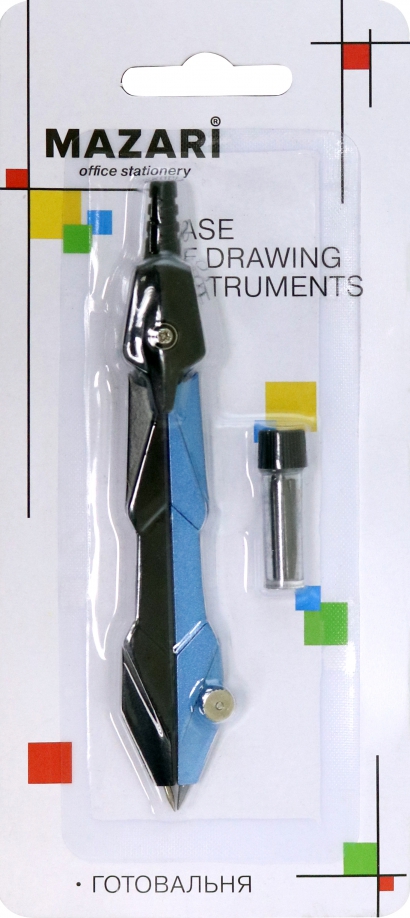 Готовальня, 2 предмета (циркуль металлический, грифель для циркуля в футляре), блистерная упаковка