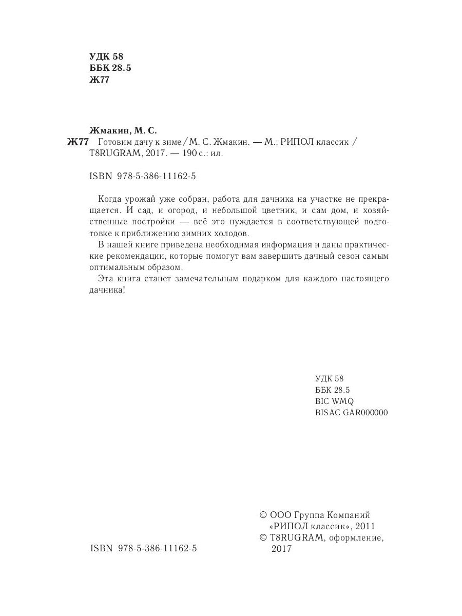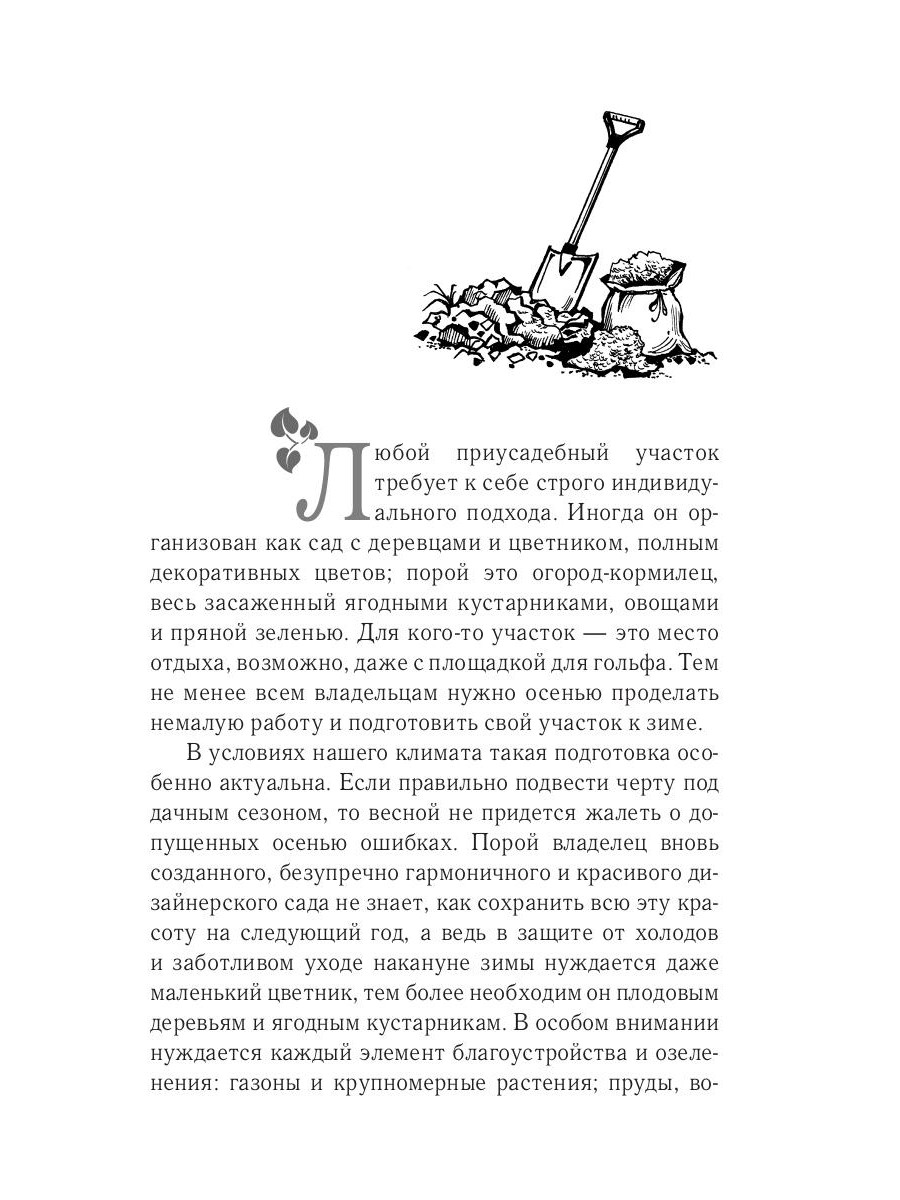 Когда урожай уже собран, работа для дачника на участке не прекращается. И сад, и огород, и небольшой цветник, и сам дом, и хозяйственные постройки - всё это нуждается в соответствующей подготовке к приближению зимних холодов. В нашей книге приведена необходимая информация и даны практические рекомендации, которые помогут вам завершить дачный сезон самым оптимальным образом. Эта книга станет замечательным подарком для каждого настоящего дачника!