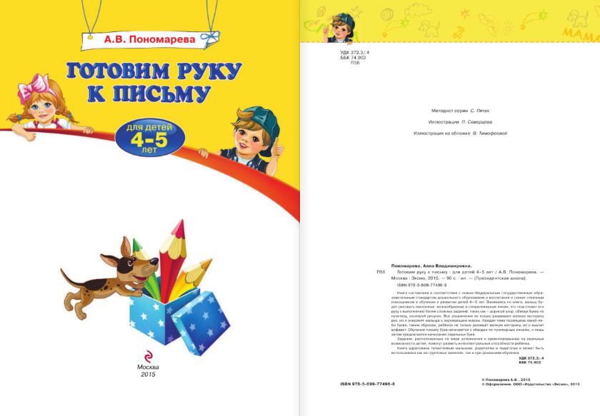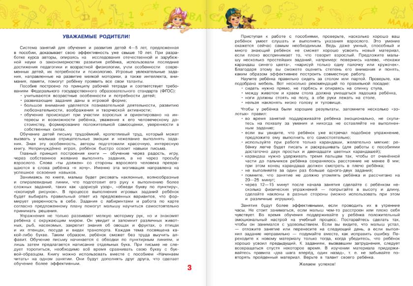 Жизнь не стоит на месте. Наши дети рано начинают общаться с компьютером и обладают знаниями, которых их родители в таком возрасте еще не имели. Поэтому возникла острая потребность в современных обучающих пособиях, соответствующих требованиям нового времени.<br /> Преподаватели «Президентской школы» предлагает отличное решение для эффективного развития и качественной подготовки современных детей к дальнейшему обучению! Лучшие авторы, опираясь на огромный опыт работы, новейшие достижения педагогики, психологии, возрастной физиологии создали серию обучающих книг, где учли особенности развития и потребности современных детей. Пособия разработаны в соответствии с требованиями Федерального государственного образовательного стандарта дошкольного образования.<br /> Занятия по книге помогут ребёнку:<br /> - Развить мелкую моторику;<br /> - Подготовить руку к письму;<br /> - Выучить алфавит;<br /> - Развить познавательные способности, структурное мышление, интеллект и кругозор;<br /> - Провести время интересно и с пользой.