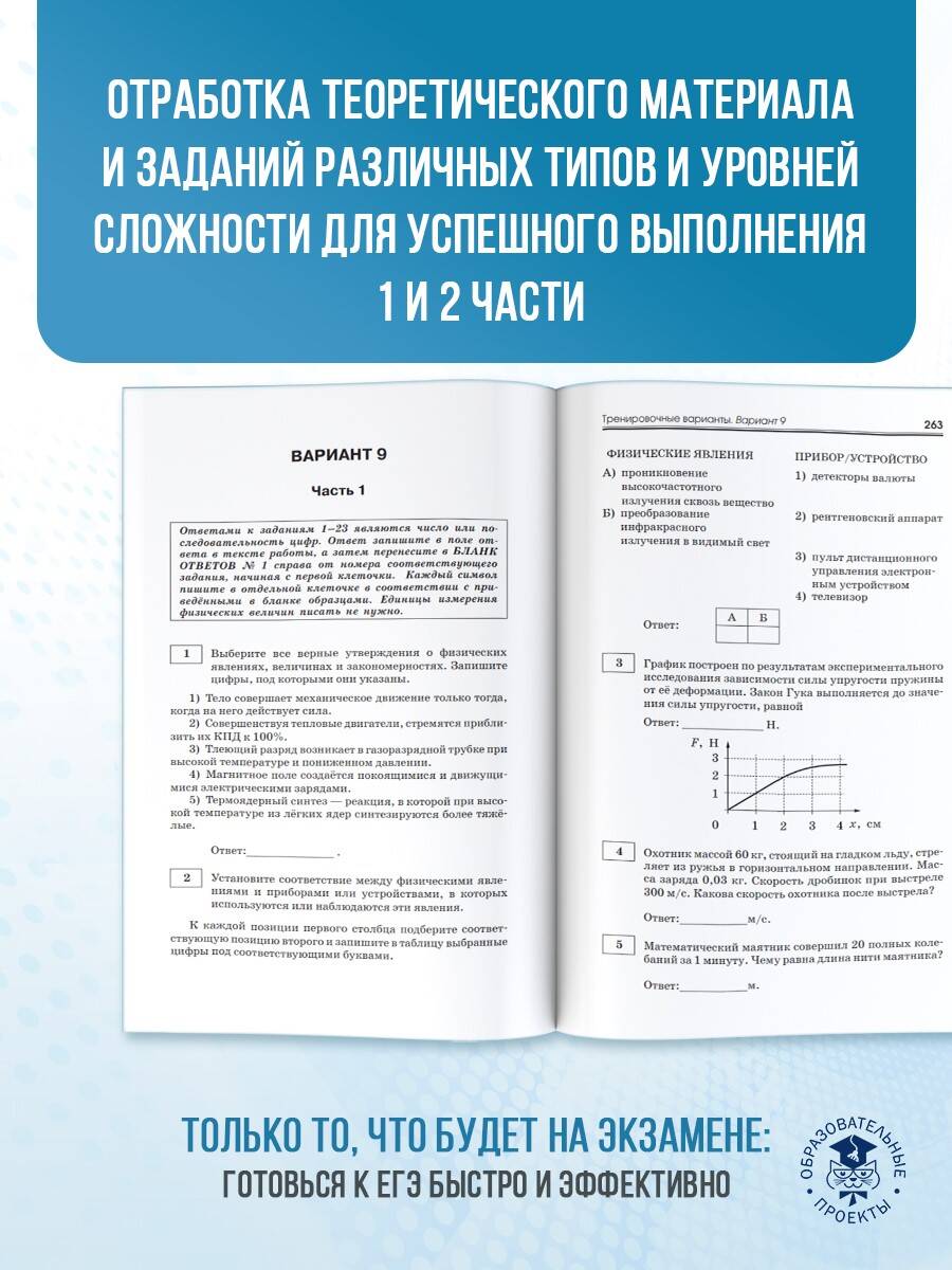 Пособие предназначено для быстрой и эффективной подготовки учащихся 11 классов общеобразовательных организаций к единому государственному экзамену по физике. Книга включает все основные темы школьного курса физики для средней школы. Теоретический материал представлен в краткой и наглядной форме в виде схем и таблиц, позволяющих легко и быстро повторить пройденный в школе курс, систематизировать и углубить полученные за время обучения знания. Практическая часть пособия содержит тренировочные варианты экзаменационных работ, что дает отличную возможность овладеть необходимыми умениями и навыками для успешного прохождения итоговой аттестации. В конце книги даны ответы для самопроверки на все задания.| Издательство | ИЗДАТЕЛЬСТВО "АСТ" |